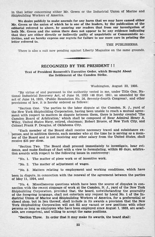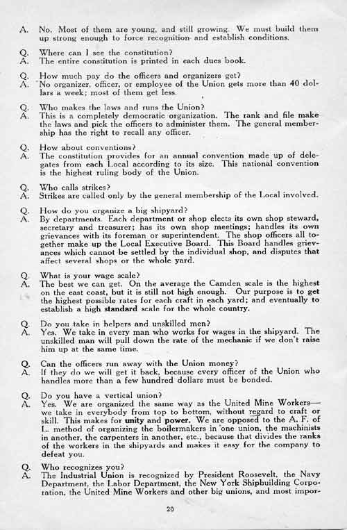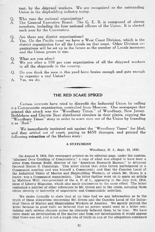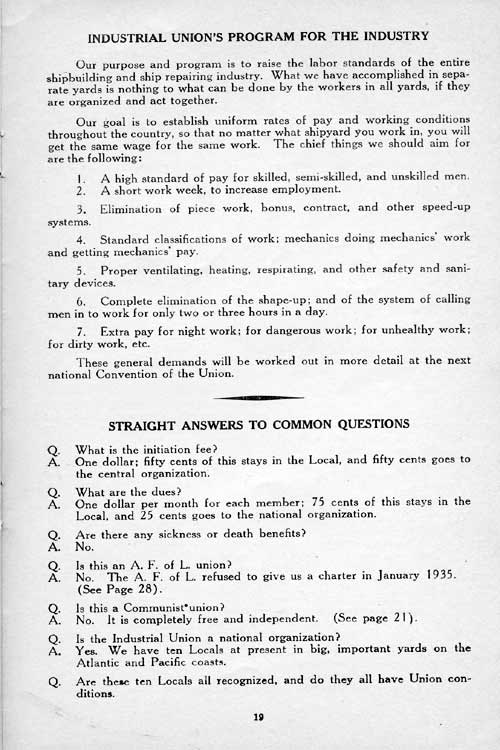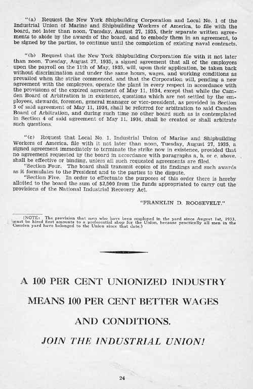 We also tell in here the story of the two great strikes in the Camden shipyard in 1934 and 1935; the story of the growth of the Industrial Union of Marine and Shipbuilding Workers of America, and our plans for the future. These plans include YOU.