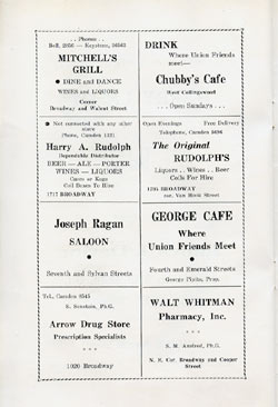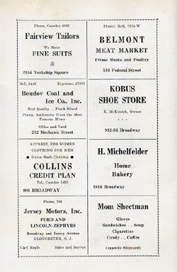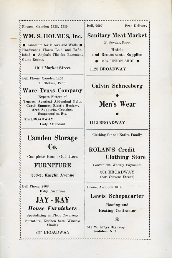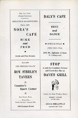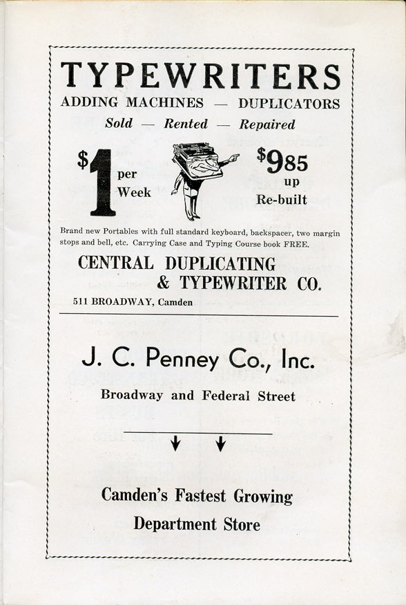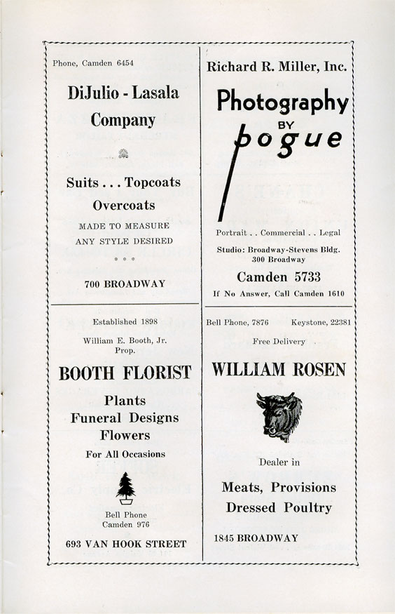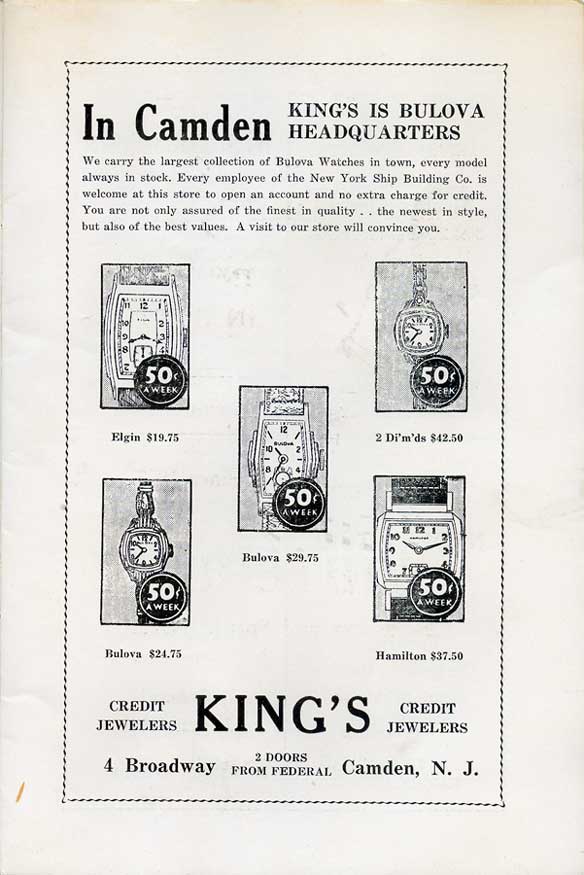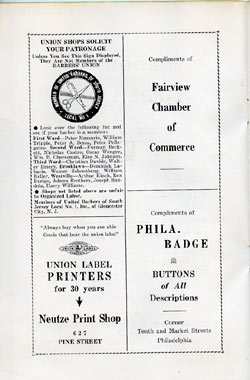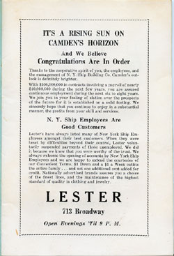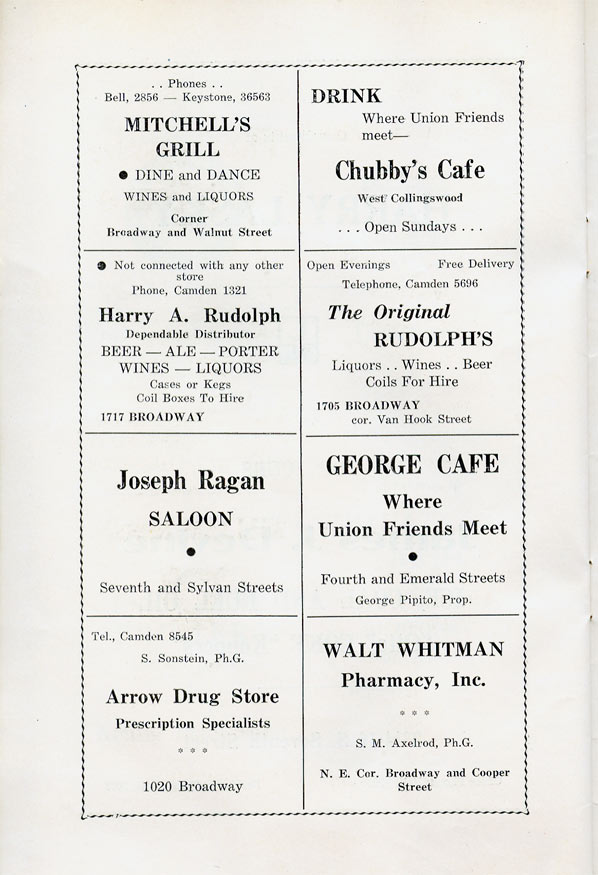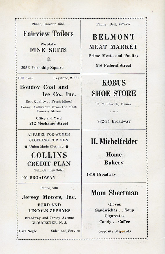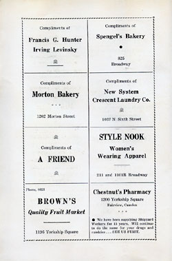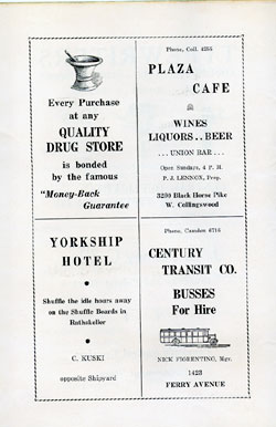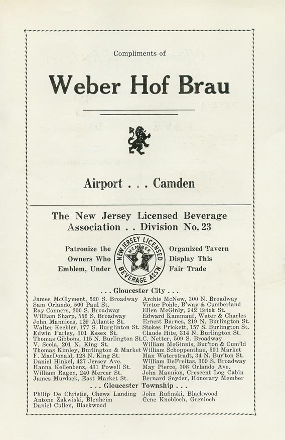 With the thousands of employees at New York Ship as members, the Local 1 Ball was quite a large event, and was staged in Camden's largest venue, the original Convention Hall, which stood on Line Street at Memorial Avenue. This building burned down in the early 1950s, and the site is now a parking lot for employees of Campbell's Soup corporate headquarters.