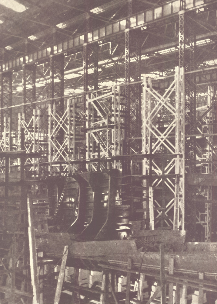 Outfitting one of sixteen 21,000-ton passenger liners in the covered wet slip