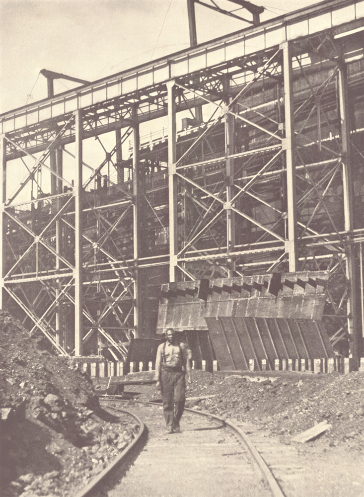 and the storage yards are made into one compact, efficient unit by the railroad and crane systems.Click on Image to Enlarge