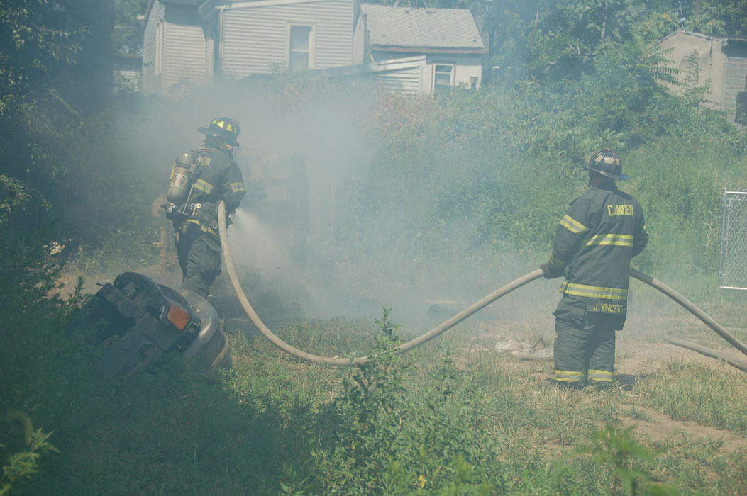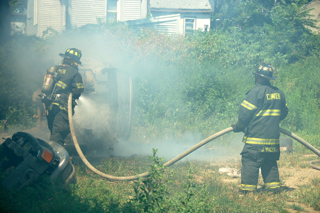 After budget cuts brought on in great part by poor leadership at the state level from both political parties under Governors Whitman, McGreevey, Codey, and Corzine the City of Camden laid of a large number of its professional fire department at the end of 2010. Former Chief David A. Yates had offered three plans on how to cope with the situation, all were rejected by parties at Camden's City Hall, and a plan for the Fire Department, which to date I have not been able to find out who authored, was handed back to the Chief. Chief Yates subsequently chose to retire, and Chief Michael Harper was appointed as his replacement. Chief Harper inherited a no-win situation, and the losses began almost immediately. With Fire companies closed in different parts of the city, response times to fire calls increased, homes that could have been saved were destroyed, and civilians injured. On June 6, 2011 a vacant two-story twin at 821-823 of Chestnut Street was destroyed by fire. Three days later, on June 9, fire broke out in the abandoned warehouse on Chestnut Street that formerly housed the Reliable Tire Company. When the few available local units arrived on the scene, hydrants were found to have been vandalized, delaying efforts to extinguish the blaze, which soon went to 12 alarms. Units were called in from surrounding communities, obviously taking a great deal of time to arrive on scene. In the mean time, high winds caused the fire to spread to adjacent buildings that formerly were occupied by the Camden Pottery Company, and homes on Orchard, Louis, and Mount Vernon Streets. Ten occupied homes were completely destroyed, as were all the industrial buildings, and thirteen other homes on Chestnut Street were badly damaged by smoke and water. Conditions and results of this blaze mimicked in almost every way the Poet's Row fire of August, 1972 where a vacant leather factory once occupied by the John R. Evans & Company caught fire and two and one-half full city blocks of homes on Byron, Burns, and Milton Streets were completely and utterly destroyed… a deadly combination of an old and abandoned industrial building, short-staffed fire department, low water pressure and high winds being among the contributing factors. In the early morning hours of June 11, 2011 another abandoned industrial building was reported to be on fire. The former Howland Croft, Sons & Company mill on Broadway between Winslow and Jefferson Streets was devastated by a blaze that went to eight alarms. One house at the corner of South 4th and Winslow and three homes on Winslow Street were damaged by smoke and water, but fortunately, none were destroyed. Rumors of arson were flying through the city when, on Tuesday, June 14 a vacant twin at 107 North 34th Street was gutted, with the adjacent home taking a great deal of smoke and water damage. On June 19, ANOTHER vacant industrial building went up in flames. The building in the 1600 block of Federal Street, originally a soap works and in more recent times a facility belonging to Concord Chemical, went up in flames. This fire was confirmed as an arson a few days later. In the meantime, calls for fire service great and small continued. On June 23rd, a vacant industrial building in the 1000 block of Empire Avenue saw fire, just a few days after the Concord Chemical blaze. On June 25th, a fire was knocked down in the vacant building at Davis and Copewood Streets, the original home of the Coriell Institute, now located on Haddon Avenue. At 11:47 PM on the night of June 25, the Camden Fire Department was called on to extinguish a blaze at 1018 Kenwood Avenue in the Parkside neighborhood. Camden City companies were dispatched to 1018 Kenwood Avenue when multiple callers reported a working fire. Camden County Dispatch advised that the homeowner had gone back into the dwelling and did not exit. EMS arrived and reported all occupants to be out of the structure. Squad 7 arrived with heavy fire showing from division 2 of a two story end of the row dwelling. Battalion 1 placed all hands in service. Crews knocked the fire quickly without injuries. Another fire was extinguished at 925 & 927 North 3rd Street on Monday, June 27th. In the early morning hours of July 2, 2011 a fire was extinguished at 1304 Sheridan Street, and as it was being wrapped up, the corner store at 876 Fairview Street went up in flames, with adjoining homes being damaged by smoke and water. At 1:55 AM on the morning of July 5, 2011 units of the Camden Fire Department extinguished a fire at the River Link Ferry pier at Wiggins Park. Ron Trout from www.phillyfirenews.com reported the following: B/C 1 reported he had fire on the River Link Ferry Pier with extension to the actual ferry. Engine 6 went in service with the deck gun as Squad 7 and the rest of Engine 6's crew stretched 2.5 inch hand lines. S/C PFD Marine Unit 1. Command reported the fire was contained to the pier with minimal extension to the ferry For more coverage of this incident, click here. Another vacant industrial building fell on the night of July 5, 2011 when the former home of the Clement Coverall Company at 615 Van Hook Street was destroyed by fire. The building, which dated back to at least 1896, had been designated a hazardous site by the EPA, Clement Coverall having been in the manufacture of varnishes and coatings for over 80 years at that location. The fire went to two alarms, with units from Gloucester City, Oaklyn, and Collingswood rendering assistance to Camden's Fire Department. The fire was determined to have been an arson, and a drug-abusing prostitute who had been squatting in the building was arrested for setting the fire.. At 5:55 PM on July 7, 2011 a house fire was reported at 2930 Kansas Road in the Fairview section of Camden. Responding companies arrived in the middle of a brief but sever thunderstorm. Ted Aurig from www.phillyfirenews.com reported that Camden Fire Department's Engine Company 10 "arrived with fire showing from the 2nd floor of a 