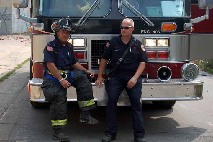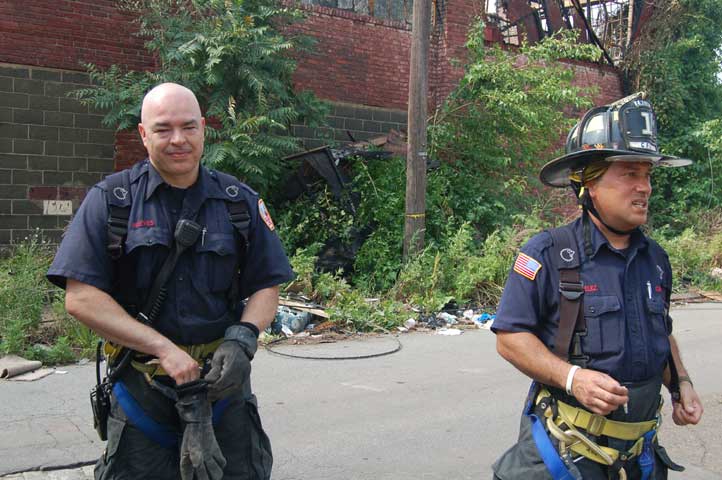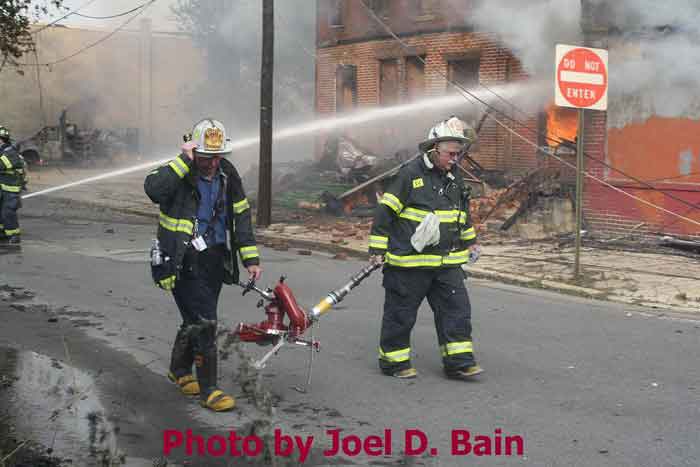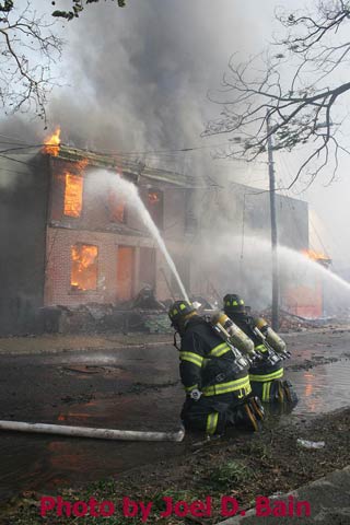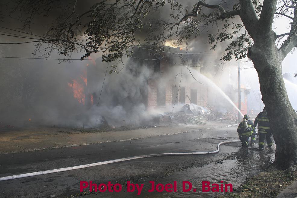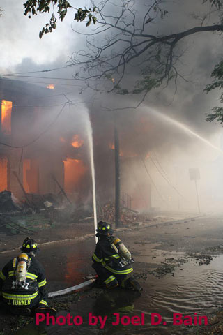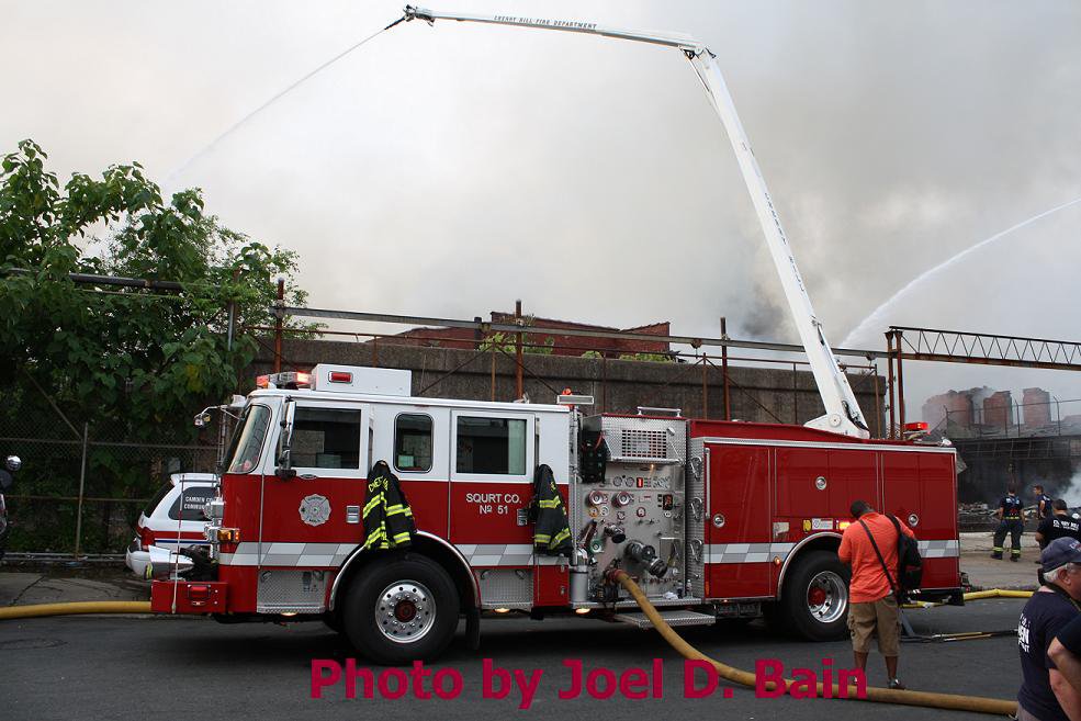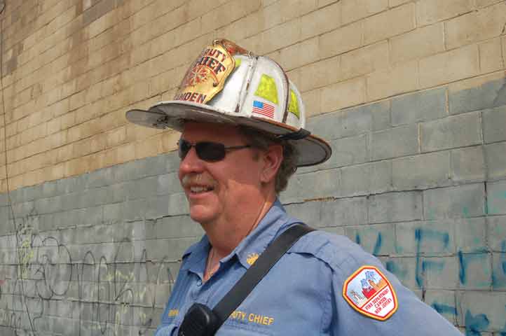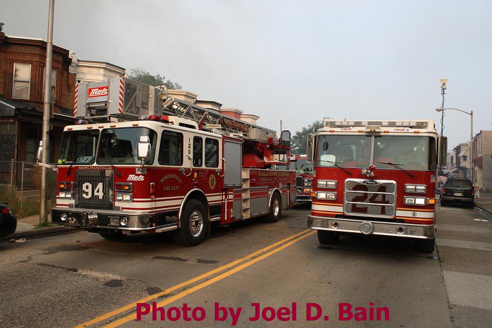 After budget cuts brought on in great part by poor leadership at the state level from both political parties under Governors Whitman, McGreevey, Codey, and Corzine the City of Camden laid of a large number of its professional fire department, effective January 17, 2011. Former Chief David A. Yates had offered three plans on how to cope with the situation, all were rejected by parties at Camden's City Hall, and a plan for the Fire Department, which to date I have not been able to find out who authored, was handed back to the Chief. Chief Yates subsequently chose to retire, and Chief Michael Harper was appointed as his replacement. Chief Harper inherited a no-win situation, and the losses began almost immediately. With Fire companies closed in different parts of the city, response times to fire calls increased, homes that could have been saved were destroyed, and civilians injured. On June 6, 2011 a vacant two-story twin at 821-823 of Chestnut Street was destroyed by fire. Three days later, on June 9, fire broke out in the abandoned warehouse on Chestnut Street that formerly housed the Reliable Tire Company. When the few available local units arrived on the scene, hydrants were found to have been vandalized, delaying efforts to extinguish the blaze, which soon went to 12 alarms. Units were called in from surrounding communities, obviously taking a great deal of time to arrive on scene. In the mean time, high winds caused the fire to spread to adjacent buildings that formerly were occupied by the Camden Pottery Company (last a division of the Universal Rundle Corporation), and homes on Orchard, Louis, and Mount Vernon Streets. Ten occupied homes were completely destroyed, as were all the industrial buildings, and thirteen other homes on Chestnut Street were badly damaged by smoke and water. Conditions and results of this blaze mimicked in almost every way the Poet's Row fire of August, 1972 where a vacant leather factory once occupied by the John R. Evans & Company caught fire and two and one-half full city blocks of homes on Byron, Burns, and Milton Streets were completely and utterly destroyed… a deadly combination of an old and abandoned industrial building, short-staffed fire department, low water pressure and high winds being among the contributing factors. As with the web page covering other Camden Fire Department events, if you can identify anyone that I've missed, please comment at the bottom of the page. (I'm terrible at at names and faces). July 3, 2011 |
