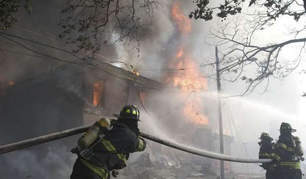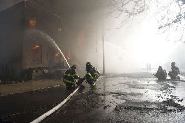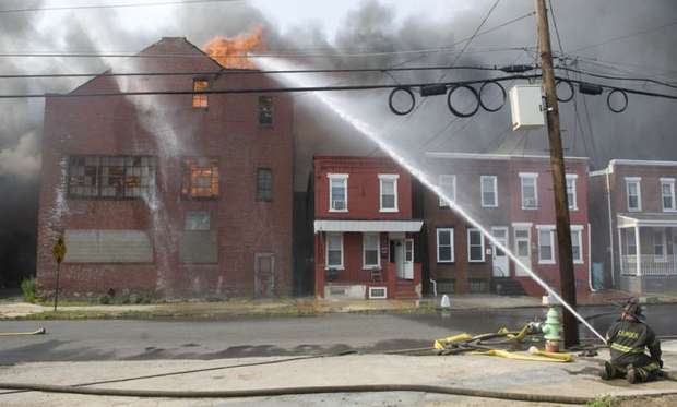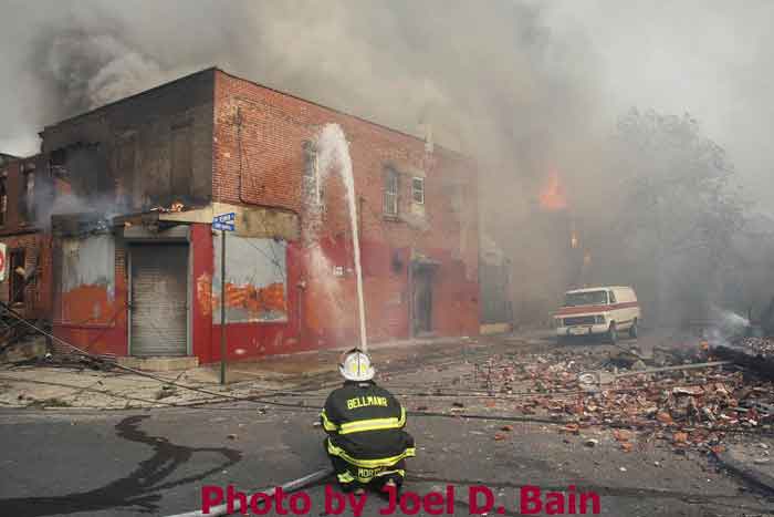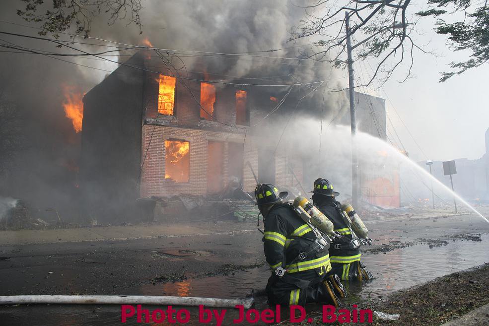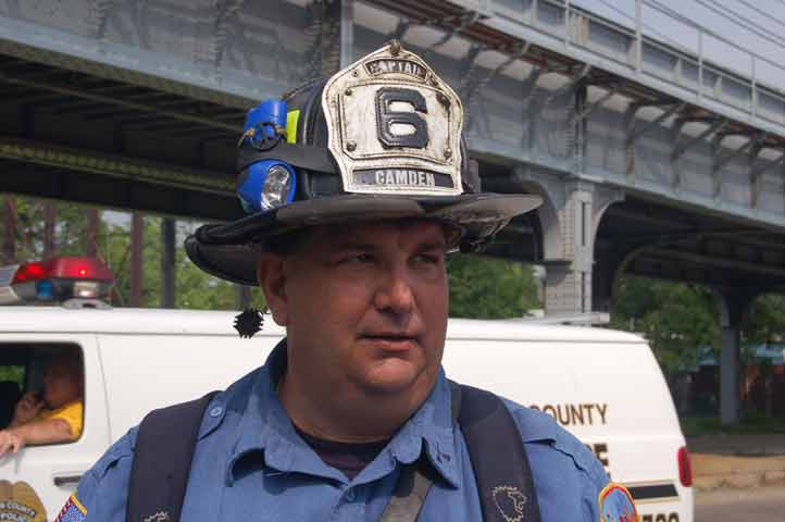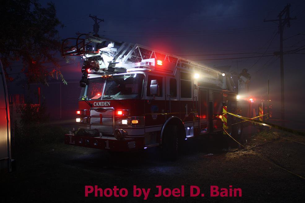 during the battle against a fire that began in a vacant Camden