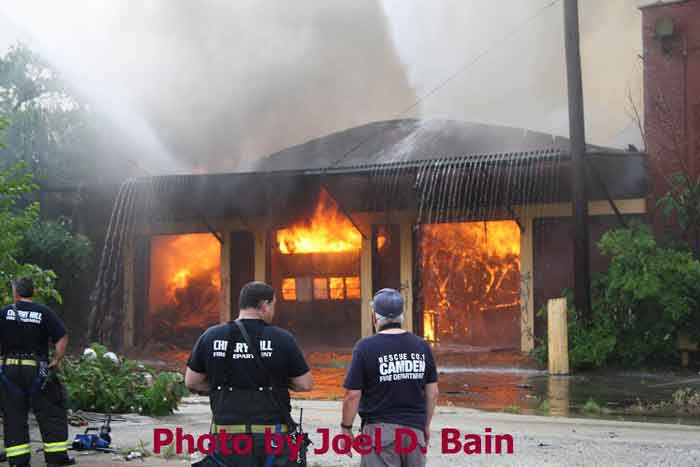 fire engulfs former tire distributorship in Camden