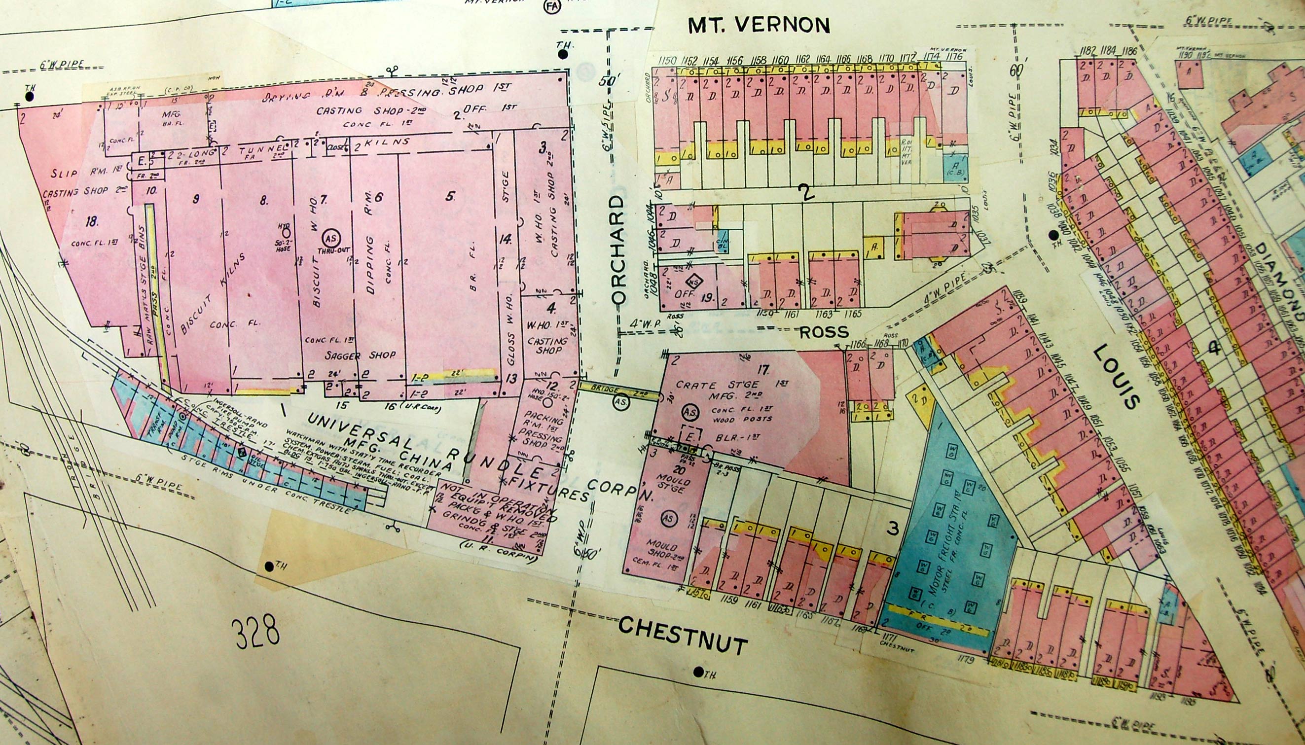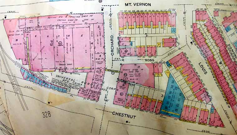 Map of the affected area Map last updated in 1962 Reliable Tire Company occupied Camden Pottery (Universal Rundle) buildings in 1964 |