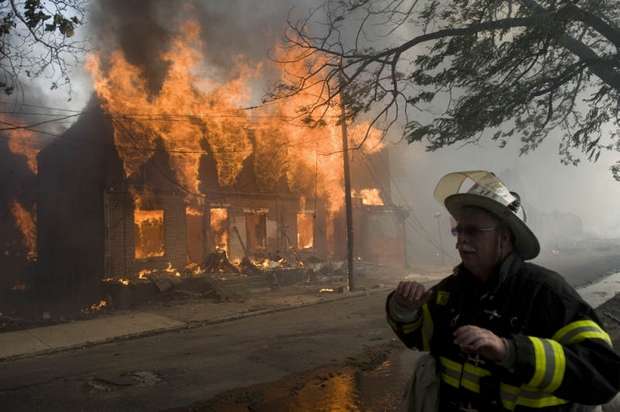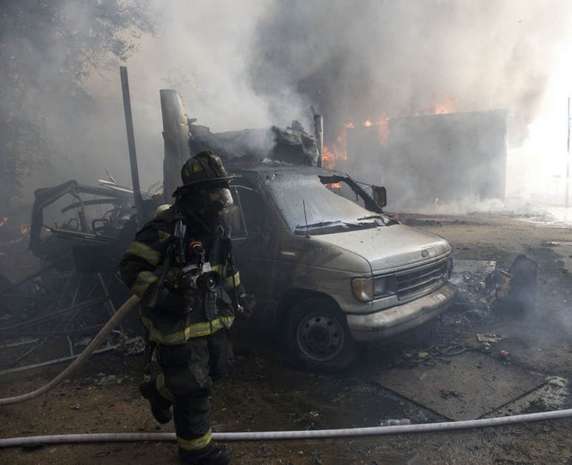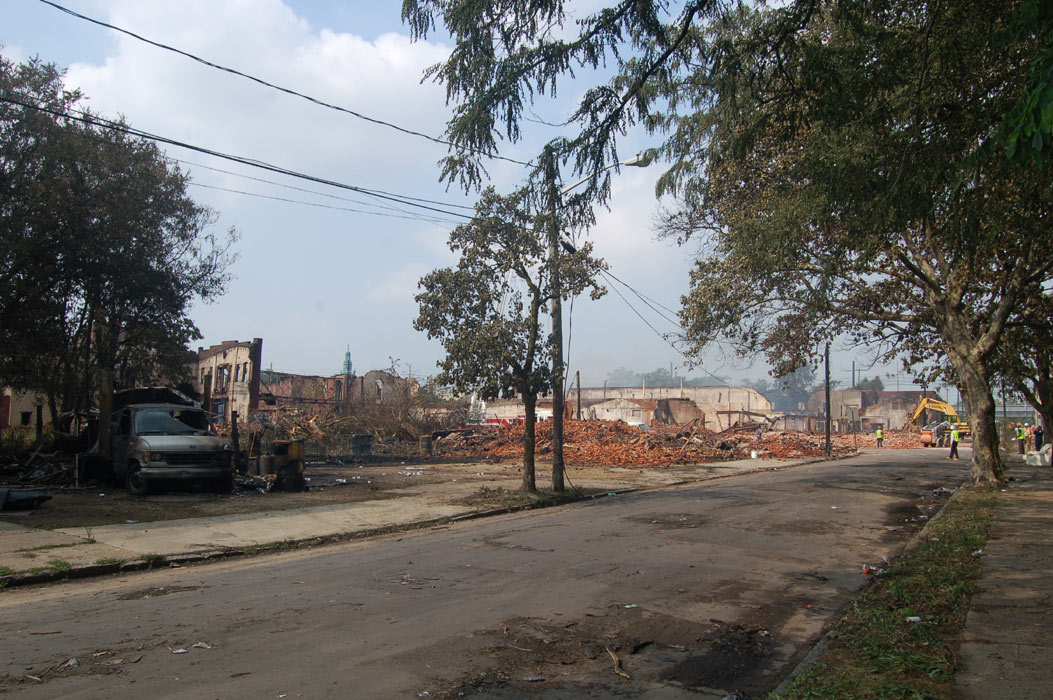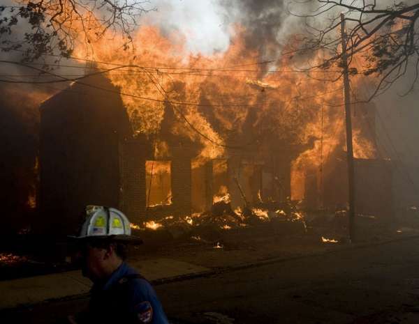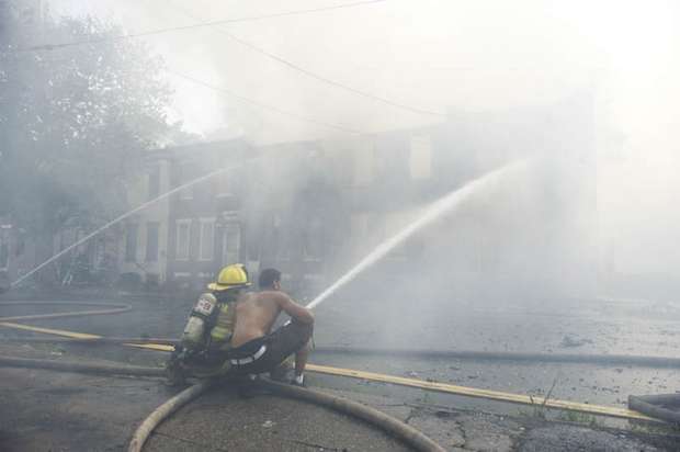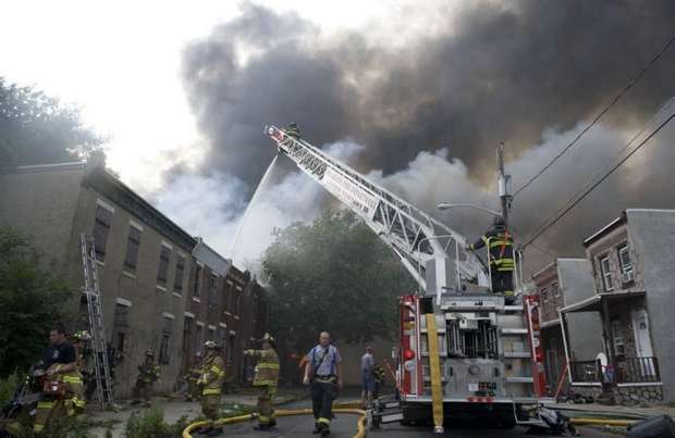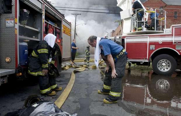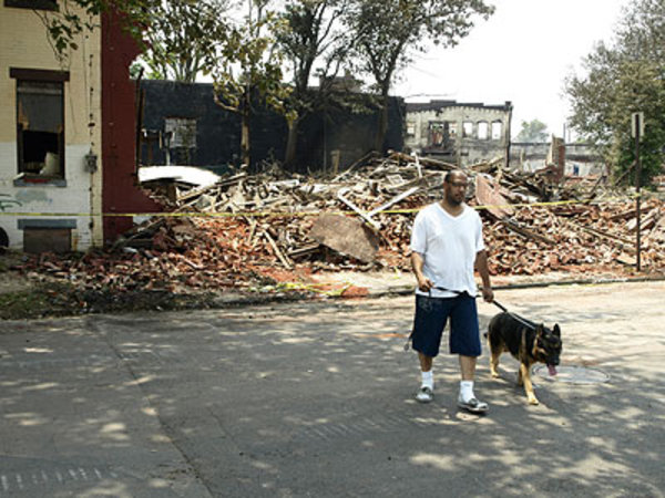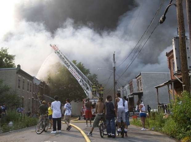 In case anyone asked later, he wanted documentation of some of the obstacles — beyond temperature near 100 degrees — that hampered his depleted department's ability to battle the fire. He photographed a fire hydrant a block away from the hottest part of the fire. Like two others nearby, the brass threadings used to connect hoses had been stolen, leaving the hydrants unusable and delaying the ability to begin the firefight in the crucial early moments after firefighters arrived Thursday afternoon. Unable to take water from a nearby hydrant, he said, it took six engine companies to pump water several blocks from the Cooper River. As they got water, the chief said, crews watched buildings that looked like they could have been saved catch fire. "When you don't get no water, you can't do anything," said Harper, a longtime firefighter who became chief in January. The fire was devastating, burning at least parts of about 23 buildings, leaving at least 20 people without homes and dozens more at least temporarily without electricity and contending with smoke damage. Harper said three firefighters and one civilian were hospitalized, all for smoke inhalation. None had life-threatening injuries. Harper said it might take weeks to determine what sparked the fire, which is believed to have started in the long-vacant building that was formerly home to the Reliable Tire Co. Like much of Camden, a city that consistently ranks as one of the nation's most impoverished, the corner of the Parkside neighborhood where the fire broke out is a hodge-podge of businesses and homes, some vacant and some occupied. The water wasn't the only challenge. In January, the city, facing a deep fiscal crisis, laid off about one-third of its firefighters. Several have been hired back. But Harper said the smaller force means that reinforcements from elsewhere have to be brought in sooner. And that's difficult, he said, because they don't know the lay of the land in a city that's so different from its suburbs. Crews had to rest frequently because of the heat of the day, the hottest since July. The thick plume of smoke meant the PATCO trains that take commuters from southern New Jersey to jobs in Philadelphia had to be shut down during the evening rush hour. Trains resumed by 7 p.m. Around 8 p.m., there was a new environmental problem: a thunderstorm. While the rain was welcomed as an aid, the lightning wasn't. Ladders positioned to fight the fire from above had to be lowered for fear they'd be struck. By the time the fire was under control later Thursday night, power transformers had melted, some propane tanks burst, several homes were reduced to rubble and a van was left charred almost beyond recognition. Harper said embers fell throughout the neighborhood, igniting a fire on a porch more than a block from the fire. A building across the street full of wood pallets and sawdust was kept from burning. On Friday, demolition crews were knocking down the remaining unstable walls of the tire building, in the hopes that investigators could soon get to the area where the fire is thought to have started. Crews from the electric company PSEG were assessing how they might be able to restore power. And Walter Nokes, who lives a block from the fire, said he had to keep his daughter home from school. All her clothes smelled of smoke, he said. One tidy house on one of the devastated blocks appeared untouched by the fire. "That house," Chief Harper said as he looked at it, "is blessed." |