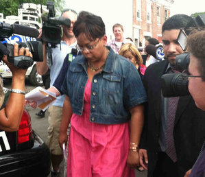 Mayor Dana L. Redd leaving a news briefing Friday at the fire scene. Officials were seeking the cause of the blaze. |