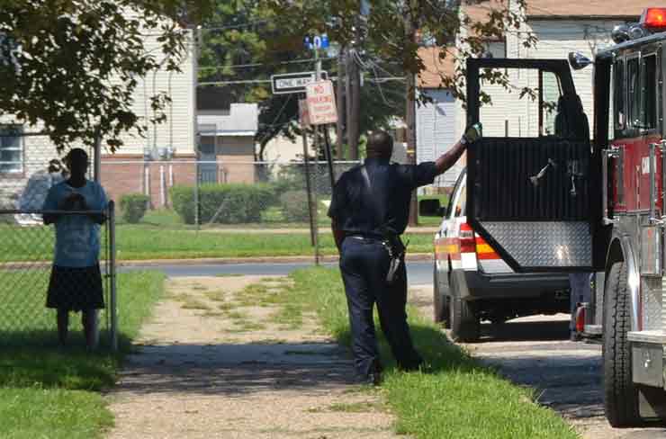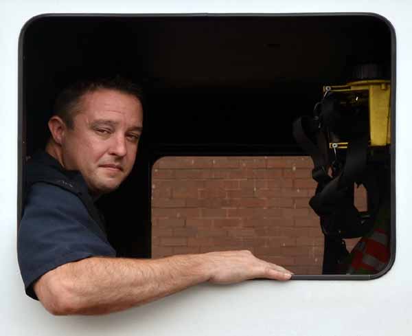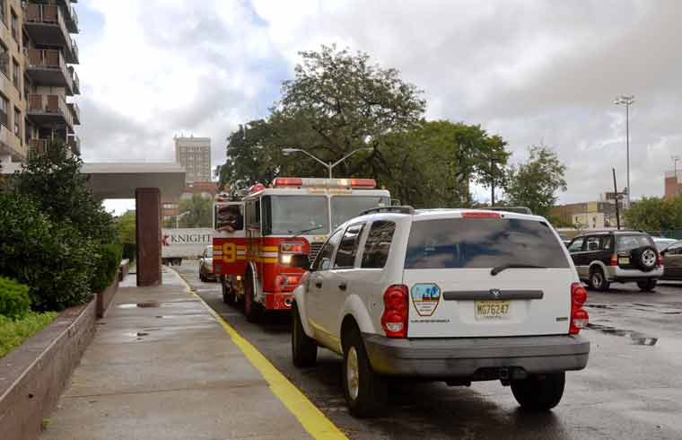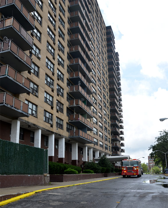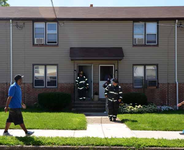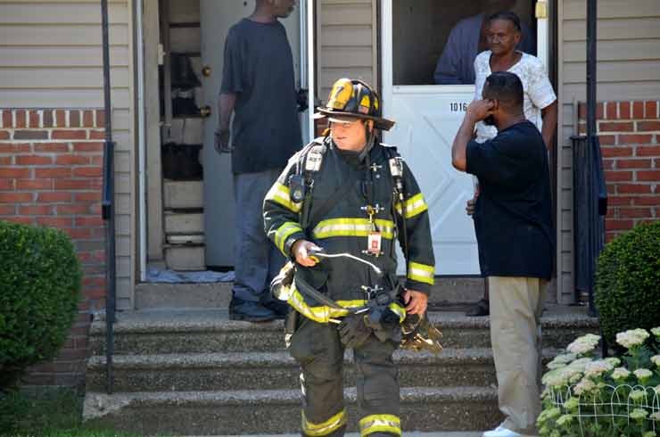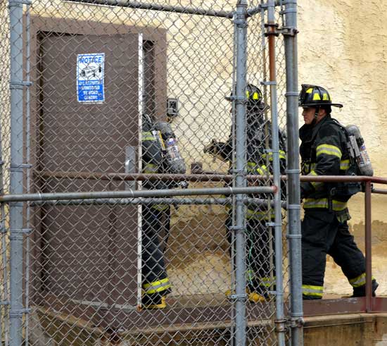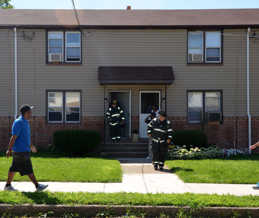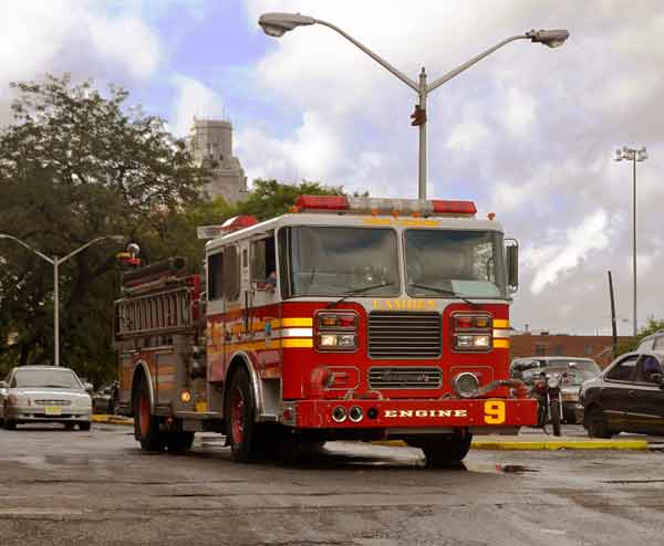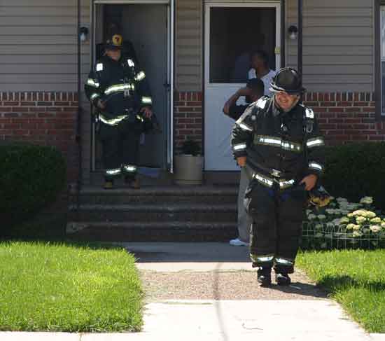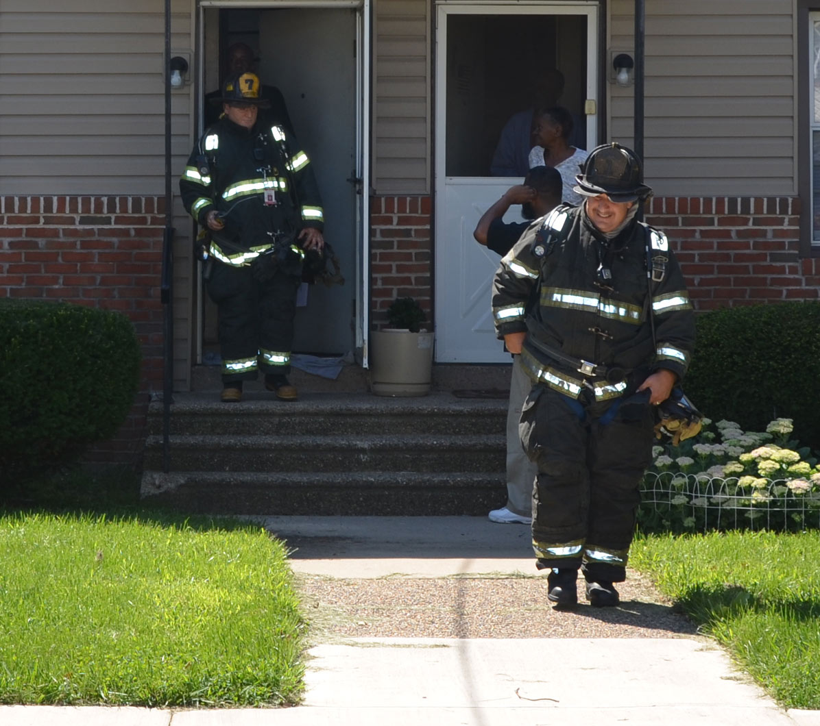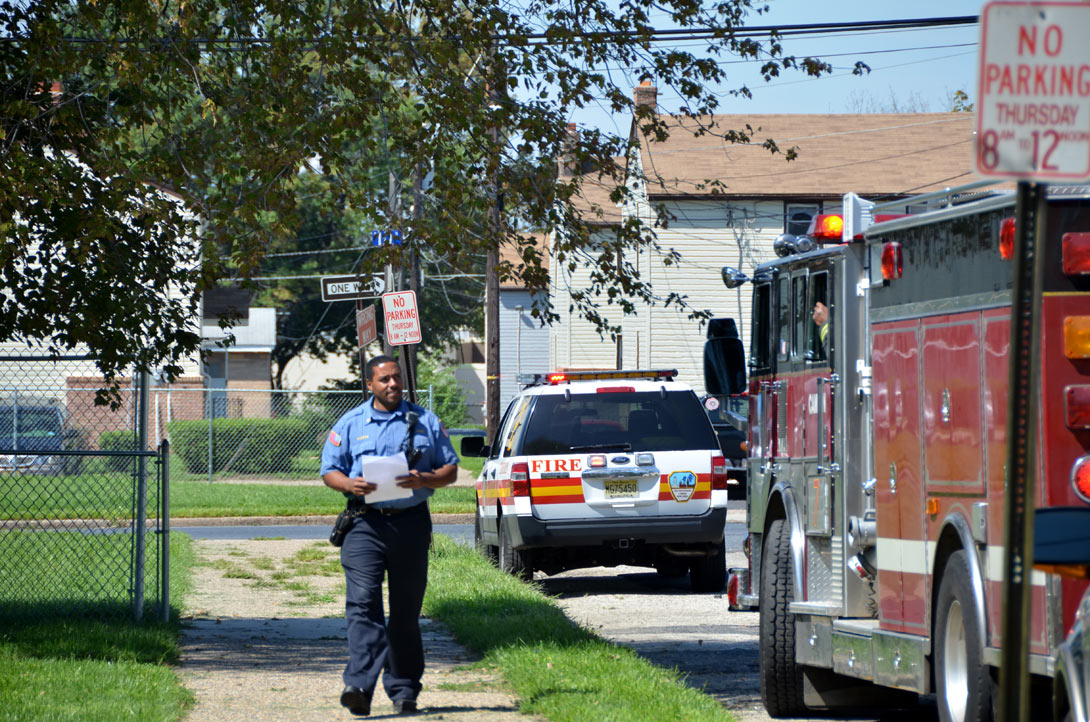 A day does not go by, and sometimes it seems like an hour has not passed, without a call for services at the Northgate I apartments, 433 North 7th Street. Often the call is in response to an alarm malfunction, sometimes an intentional false alarm, and then there are the calls for rescue service, fires in the trash chute, and the ever-popular "pot of meat"- careless cooking which triggers smoke and fire alarms. Each call must be thoroughly investigated and dealt with. In this case, during the morning hours of September 7, 2011 it was Engine Company 9, led by Captain Larry Buckingham, who was sent to investigate. Repeated alarm malfunctions on this day resulted in the alarm being taken off-line while repairs were being made. A Camden Fire Department inspectore arrived on scene monitor the repairs, and Engine 9 left to return to quarters. Before they got back to the East Camden firehouse, they would be sent on another run. |
