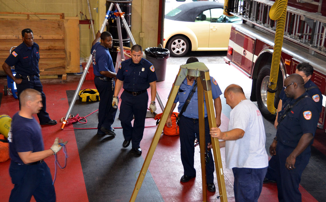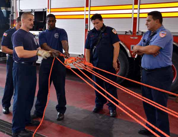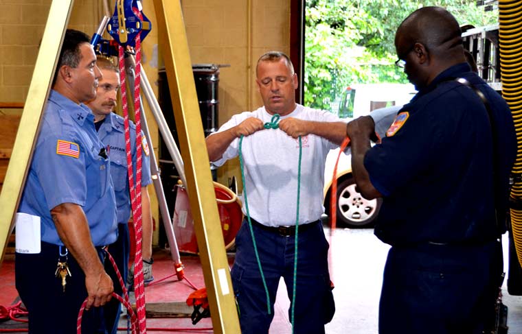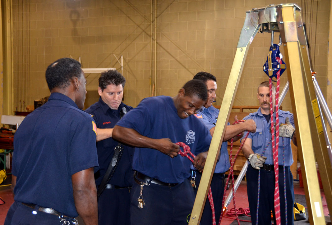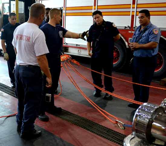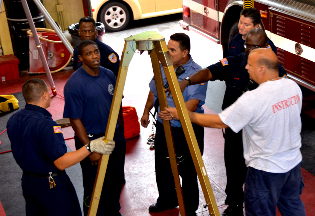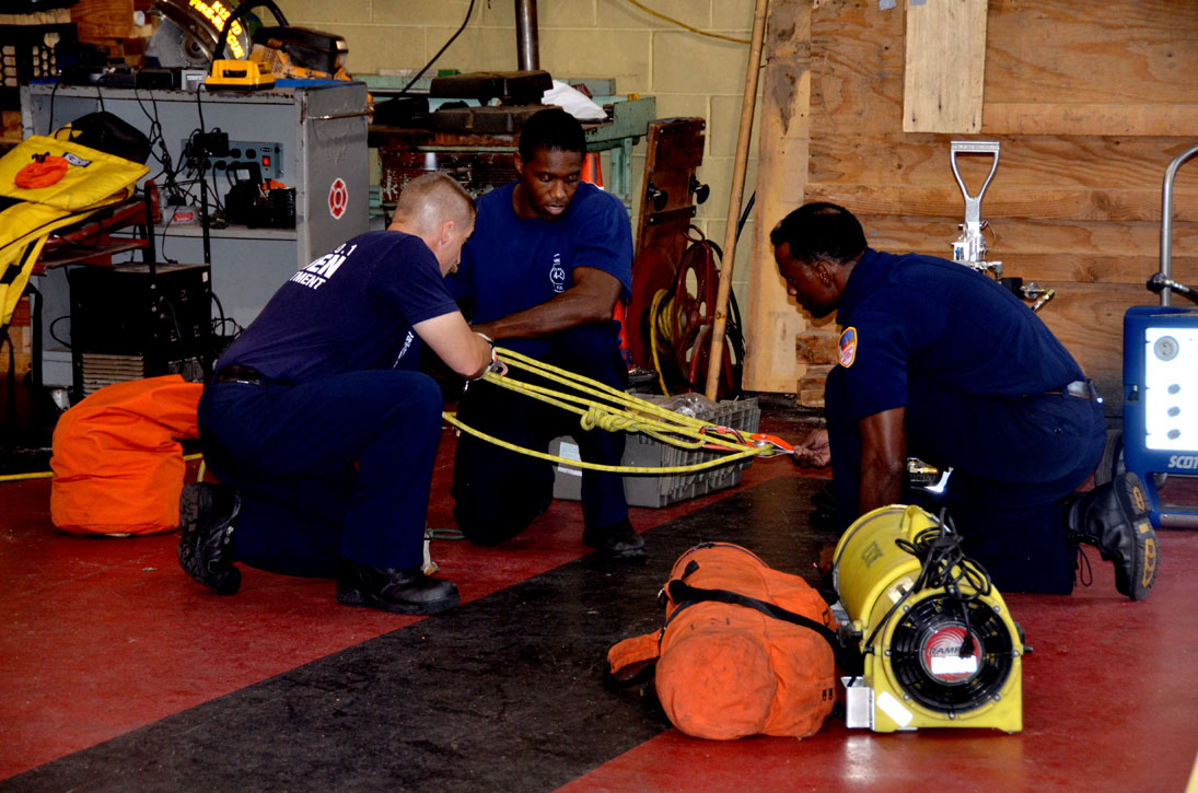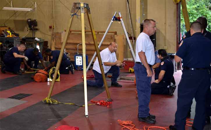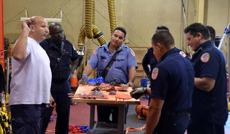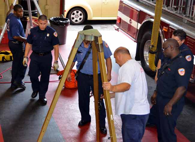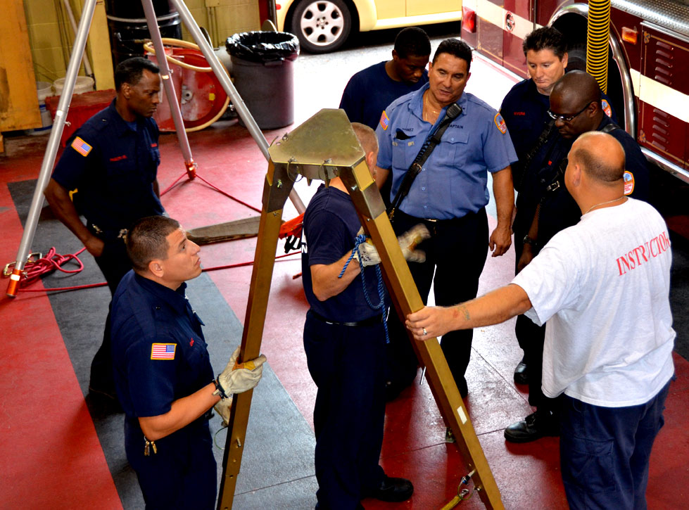 On September 9, 2011 Squad Company 7, Second Platoon Platoon received the confined space rescue training training that First Platoon received the day before. The instructors were Captains Frank Sandrock, David Dilks, Herbert C. Leary and Firefighter Eli Hall. The members of Squad 7 being trained were Captain Warren Everett and Firefighters Orlando Chandler, Chris Barrientos, Gary Lyons, Bobby Eckert, and Angel Lopez. |