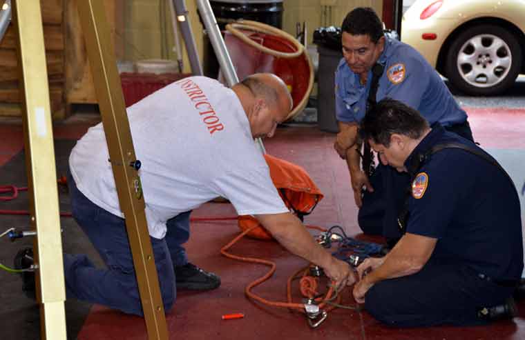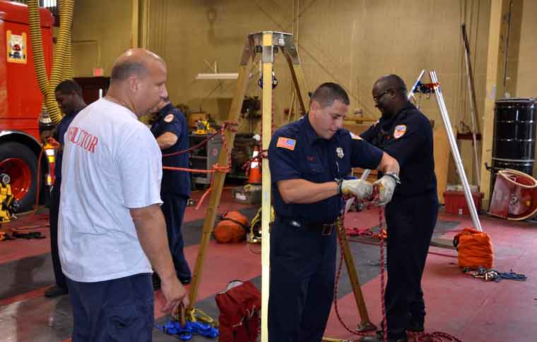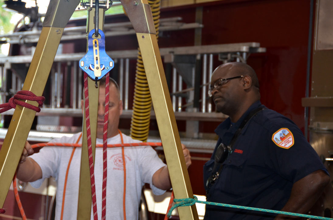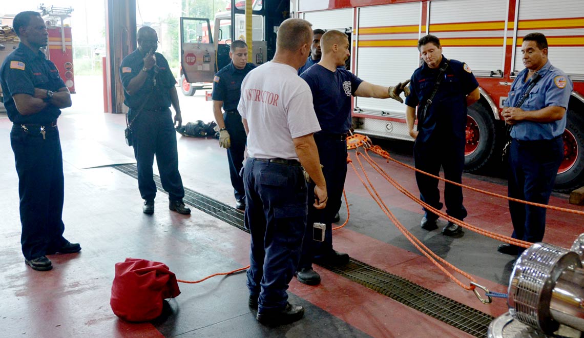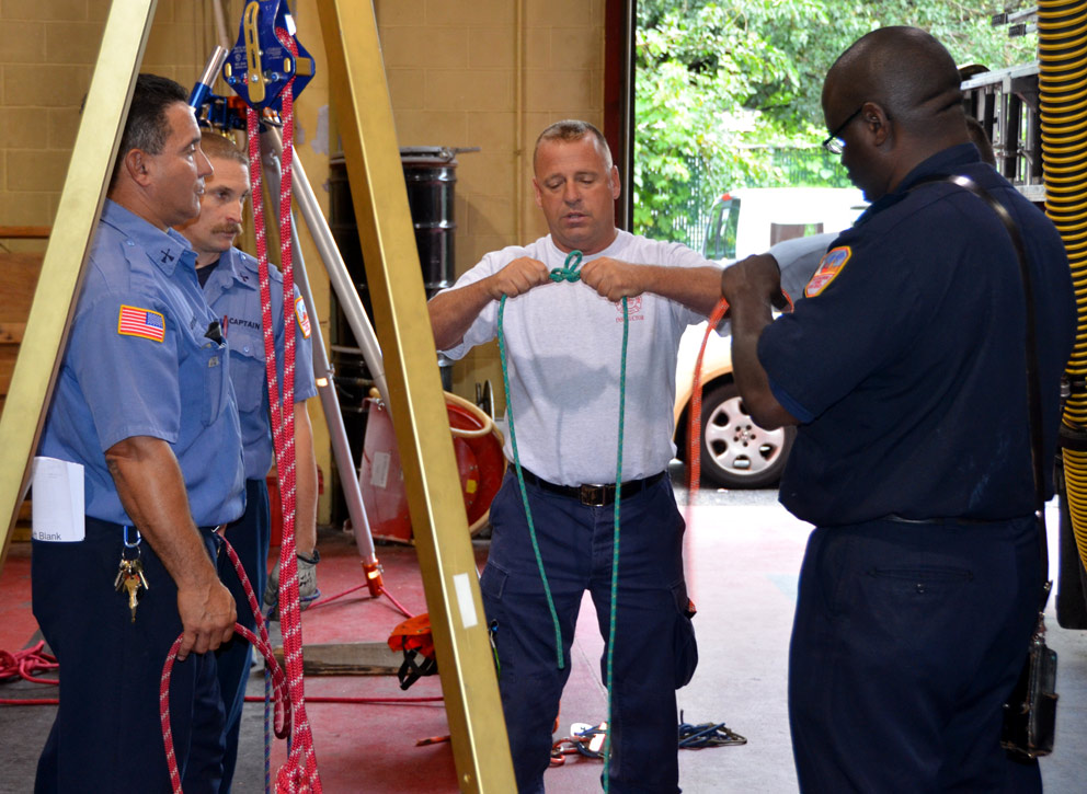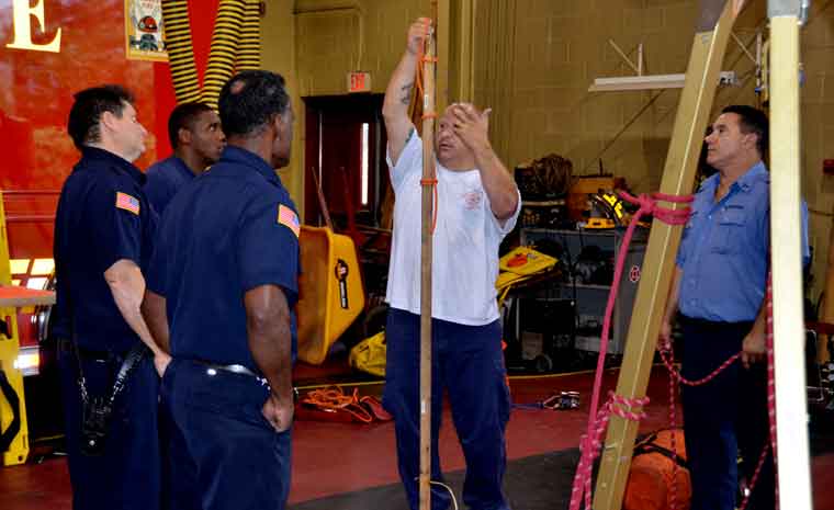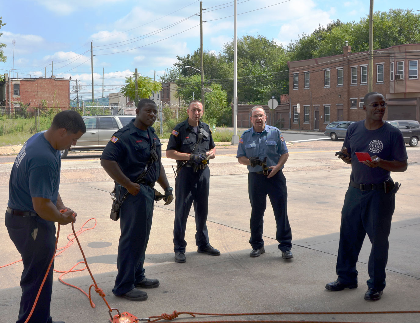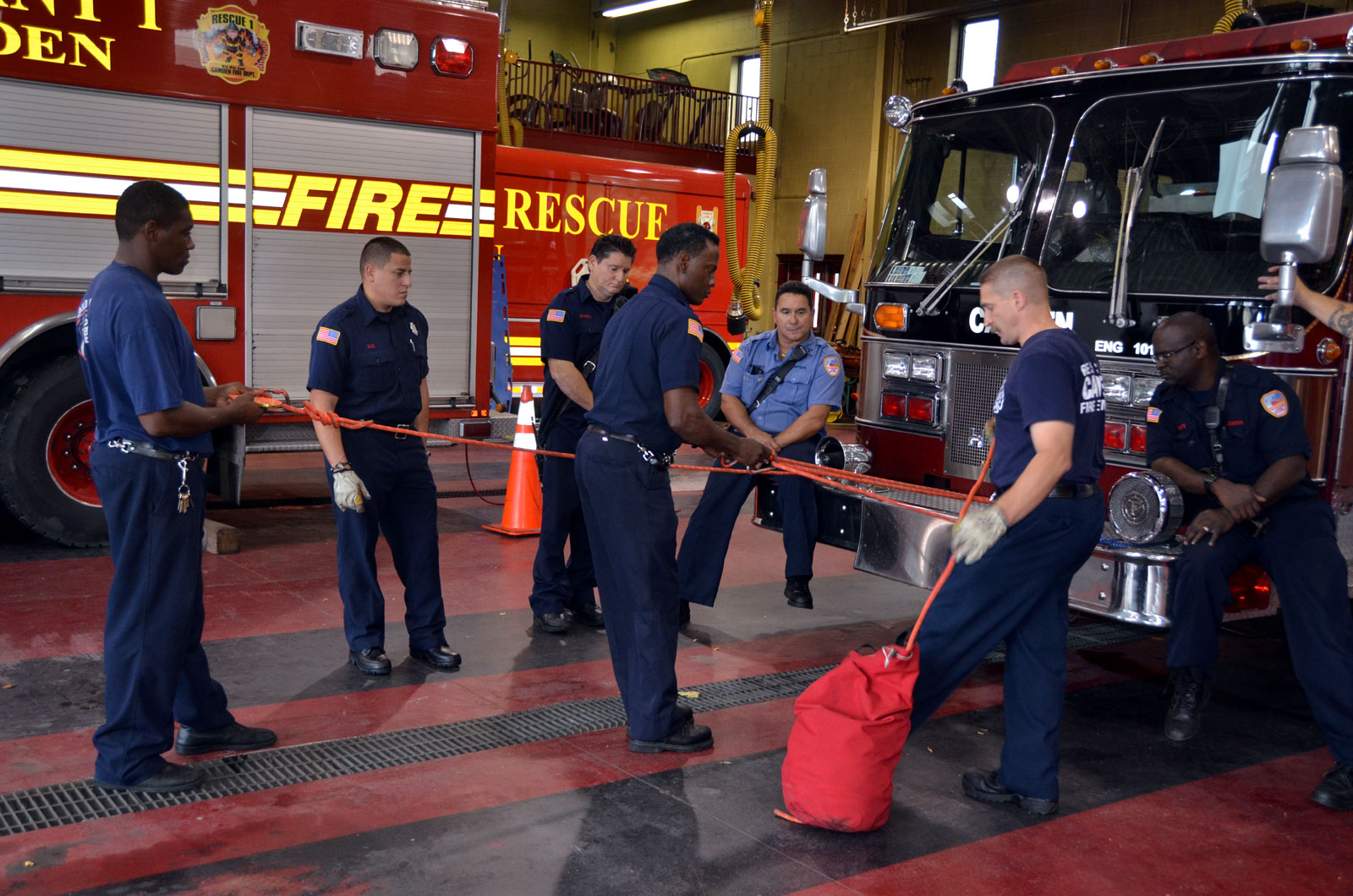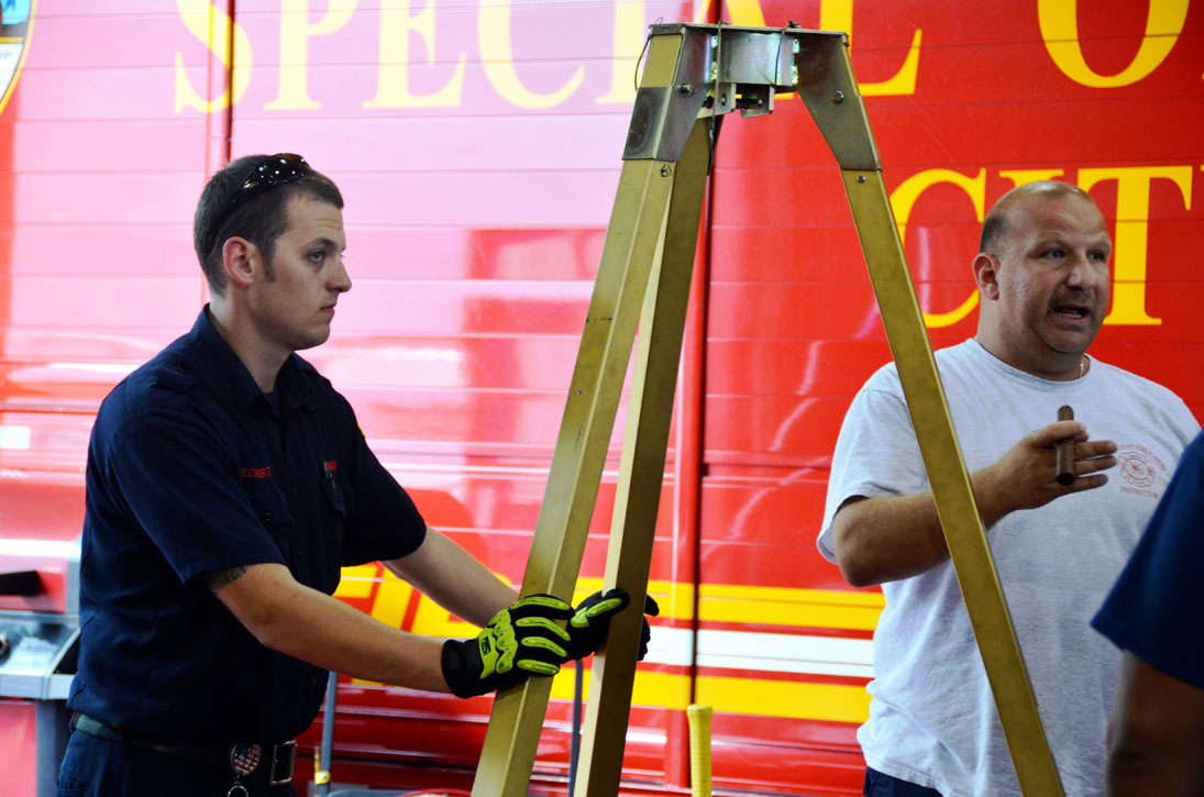 On September 9, 2011 Squad Company 7, Second Platoon Platoon received the confined space rescue training training that First Platoon received the day before. The instructors were Captains Frank Sandrock, David Dilks, Herbert C. Leary and Firefighter Eli Hall. The members of Squad 7 being trained were Captain Warren Everett and Firefighters Orlando Chandler, Chris Barrientos, Gary Lyons, Bobby Eckert, and Angel Lopez. |