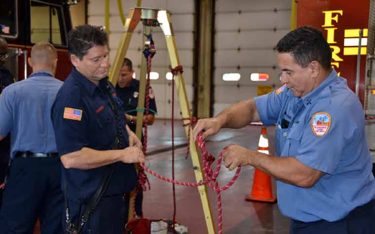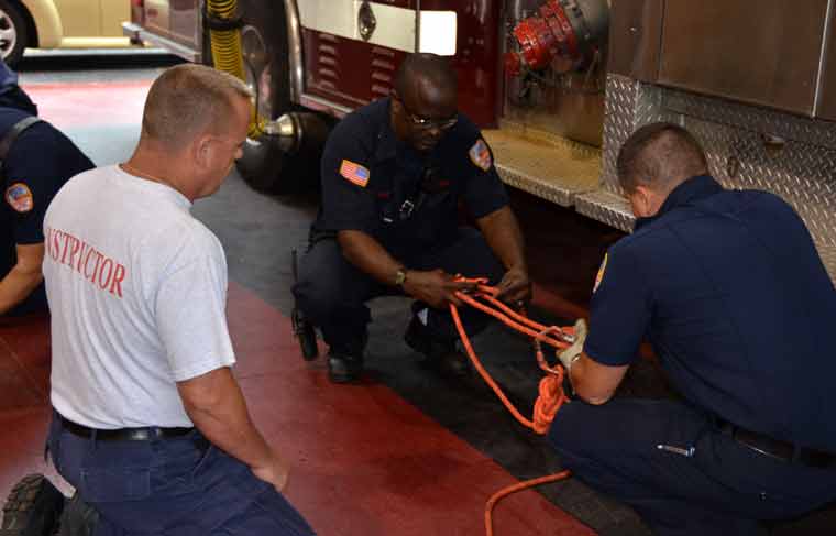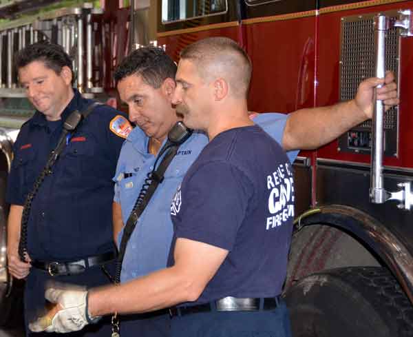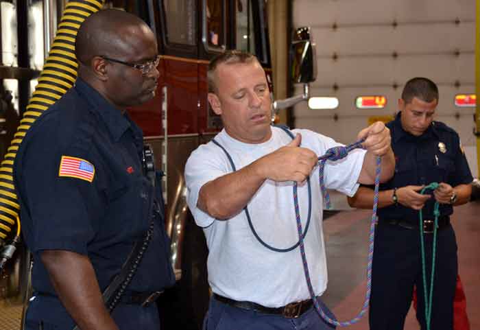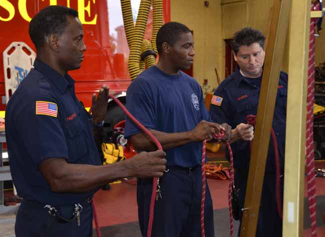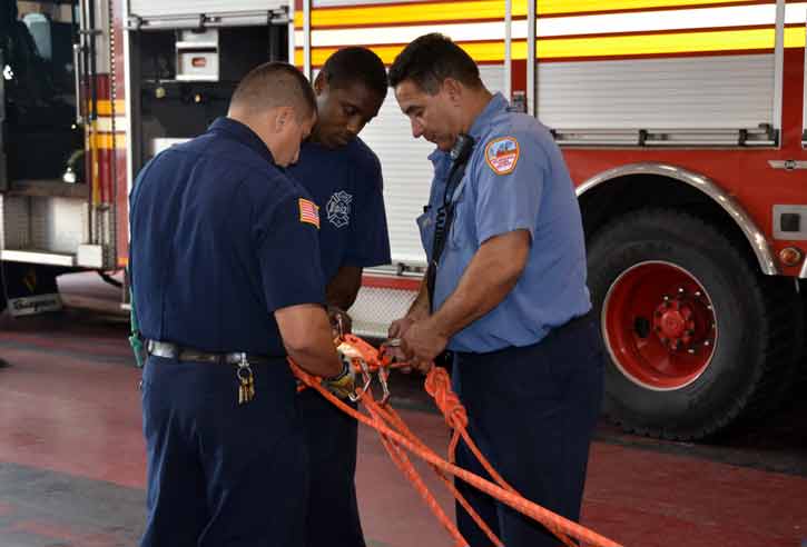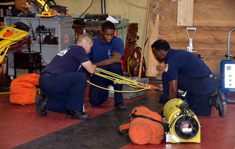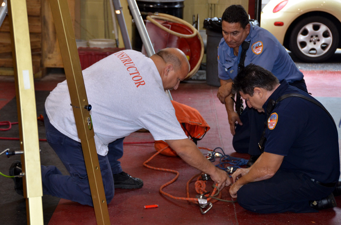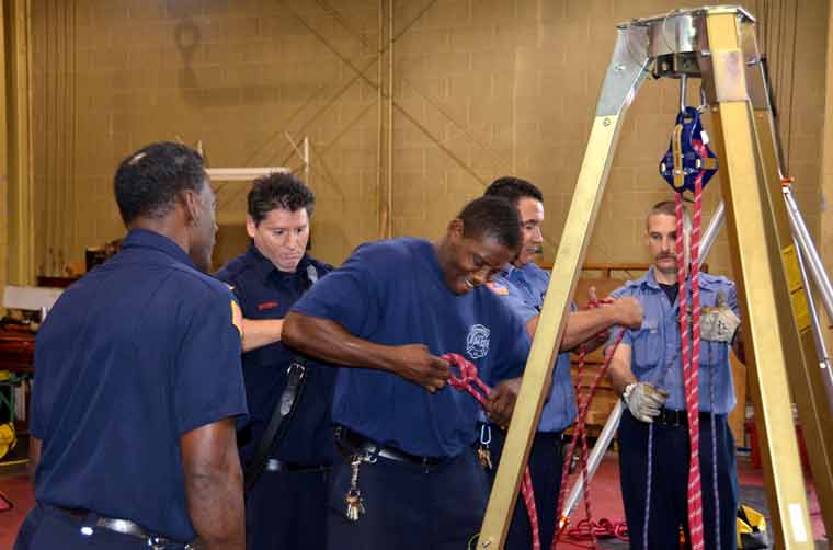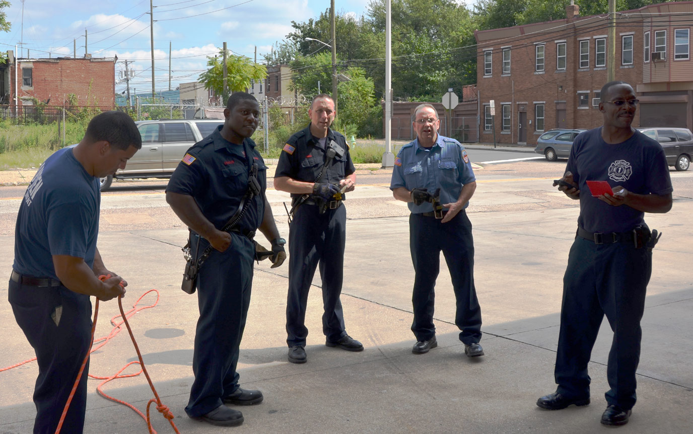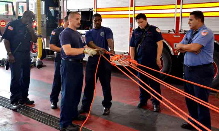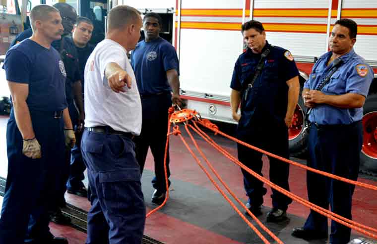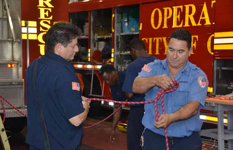 On September 9, 2011 Squad Company 7, Second Platoon Platoon received the confined space rescue training training that First Platoon received the day before. The instructors were Captains Frank Sandrock, David Dilks, Herbert C. Leary and Firefighter Eli Hall. The members of Squad 7 being trained were Captain Warren Everett and Firefighters Orlando Chandler, Chris Barrientos, Gary Lyons, Bobby Eckert, and Angel Lopez. |