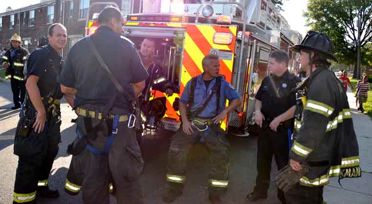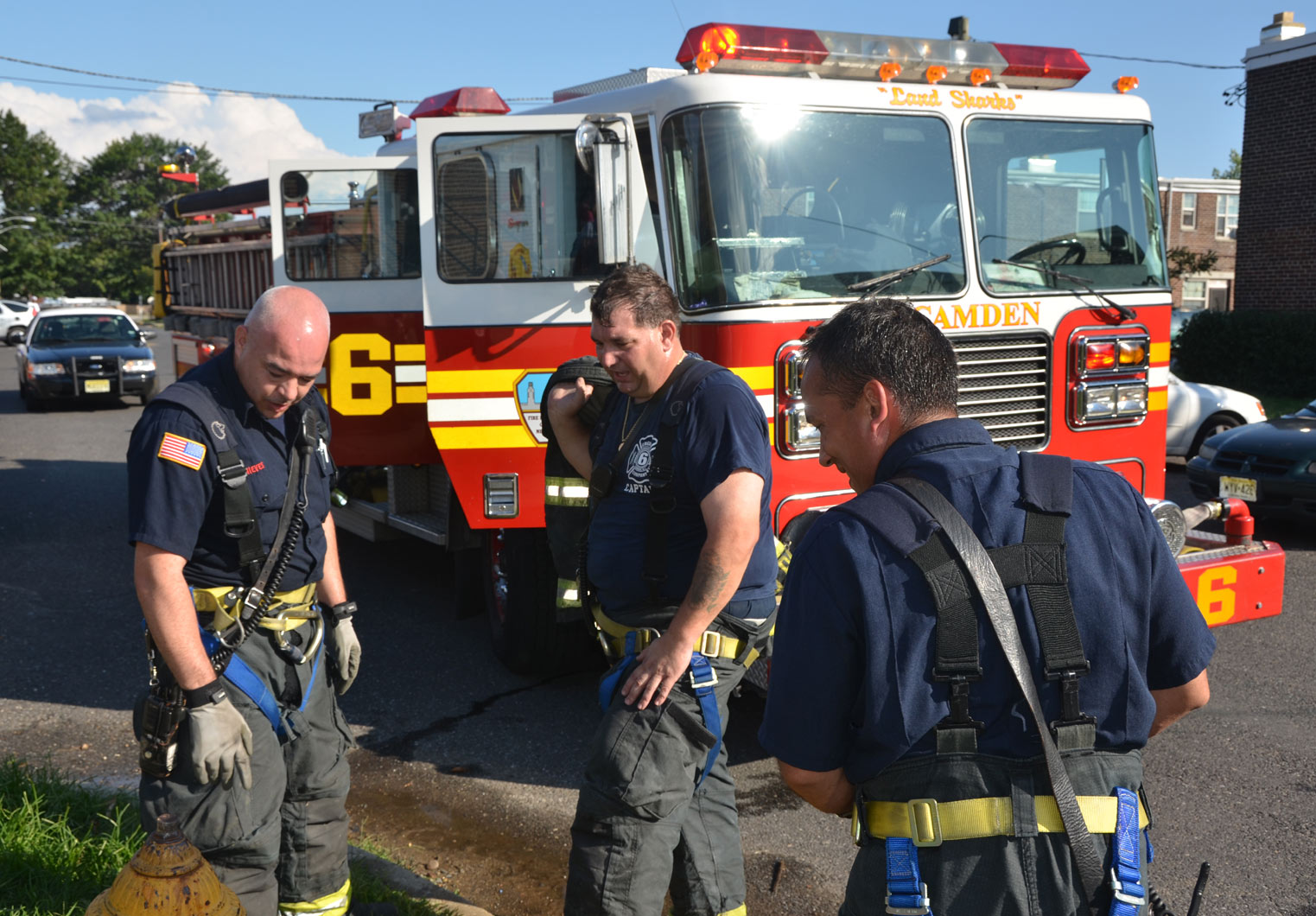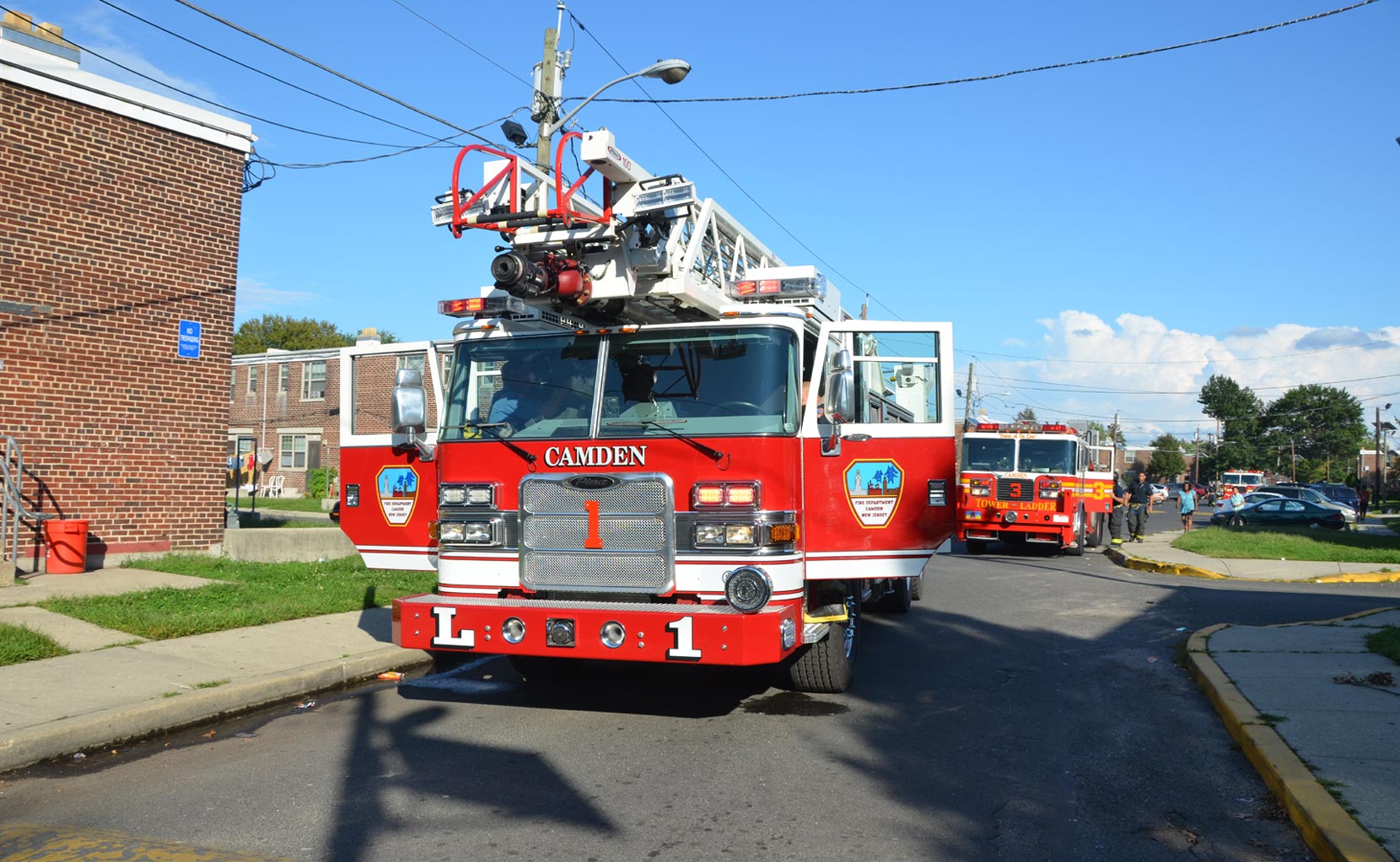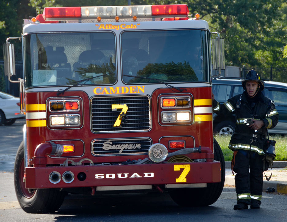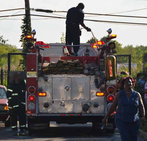 After budget cuts brought on in great part by poor leadership at the state level from both political parties under Governors Whitman, McGreevey, Codey, and Corzine the City of Camden laid of a large number of its professional fire department at the end of 2010. Former Chief David A. Yates had offered three plans on how to cope with the situation, all were rejected by parties at Camden's City Hall, and a plan for the Fire Department, which to date I have not been able to find out who authored, was handed back to the Chief. Chief Yates subsequently chose to retire, and Chief Michael Harper was appointed as his replacement. Chief Harper inherited a no-win situation, and the losses began almost immediately. With Fire companies closed in different parts of the city, response times to fire calls increased, homes that could have been saved were destroyed, and civilians injured. June and July saw four large and abandoned industrial properties go up in flames, with one blaze, on on June 9, fat the abandoned warehouse on Chestnut Street that formerly housed the Reliable Tire Company, going to 12 alarms. Ten occupied homes were completely destroyed, as were all the industrial buildings, and thirteen other homes on Chestnut Street were badly damaged by smoke and water. August was relatively quiet, fire-wise, although the department was kept quite busy with other calls, including two jobs relating to the earthquake and numerous non-fire runs relating to Hurricane Irene. Shortly after roll call on the morning of August 26th, the Camden Fire Department was summoned to fight a fire in the 500 block of Jackson Street. Four vacant units, 547, 549, 551, and 553 Jackson Street, were destroyed. Ten minutes before roll call on Friday, 500 block of Jackson Street. Received a few calls for fire in a vacant. Battalion 1 arrived and reported fire on the first floor, middle of the row vacant, ordered Engine 10 to pick up the hydrant at 6th and Jackson, and transmitted the all hands. Car 3 reported at 10 minutes heavy fire 1st and 2nd floors, companies opening up, fire extending to Bravo and Delta exposures. At 20 minutes Car 3 reported multiple handlines stretched and operating, fire conditions still on 1st and 2nd floors. Original fire building 549 Jackson Street. Responding companies were Squad 7, Engine 10, Ladder 1, Ladder 3, Rescue 1, Battalion 1. On the all hands - Engine 1, Engine 9, and Car 3. At 30 minutes Car 3 reported still operating with multiple handlines, making good progress, fire probable will hold. At 40 minutes Car 3 placed fire under control. Time received 0650 hours, Fire under control 0632 hours. The quiet time for for fires ended on September 9, 2011 with a bedroom fire at 3037 Mount Ephraim Avenue. Companies dispatched to 3037 Mt. Ephraim Avenue at 1547 hours, report of smoke from windows. Initial dispatch - Engine 10, Squad 7, Ladder 1, Ladder 3, Rescue 1 Battalion 1. Upon receiving more calls reporting same Engine 1 was added as the second source Engine. Battalion 1 arrived with smoke showing, Engine 10 had a hydrant and was stretching a handline, Rescue 1 was conducting a primary search, and ladder 1 would open up 2nd Floor upon arrival. Car 3 responded and took command. Searches were negative, fire under control at 1610 hours, Fire marshal requested to respond. This fire is being investigated as an arson. Witnesses saw youths running from the property at the time the fire broke out. Twenty-four hours and some odd minutes later, the Camden Fire Department would be called on again, to put out a kitchen fire at 191 Ablett Village. Calls for smoke from Apartment 191 Ablett Village at 1621 hours. Initial dispatch - Engine 11, Engine 1, Ladder 3, Ladder 1, Rescue 1 and Battalion 1. Squad 7 dispatched as second source company. Engine 11 arrived and reported light smoke, being waved in. Battalion 1 arrived and reported Engine 11 was stretching a handline, companies operating with a kitchen fire. At 1635 Battalion 1 reported fire contained to the first floor kitchen, primary search negative, companies ventilating. Fire under control 1635 hours. Many thanks to Fire Dispatcher Matt DeGailler for his help with the accounts of how these fires were handled. As with the web page covering other Camden Fire Department events, if you can identify anyone that I've missed, please comment at the bottom of the page. (I'm terrible at at names and faces). September 15, 2011 |