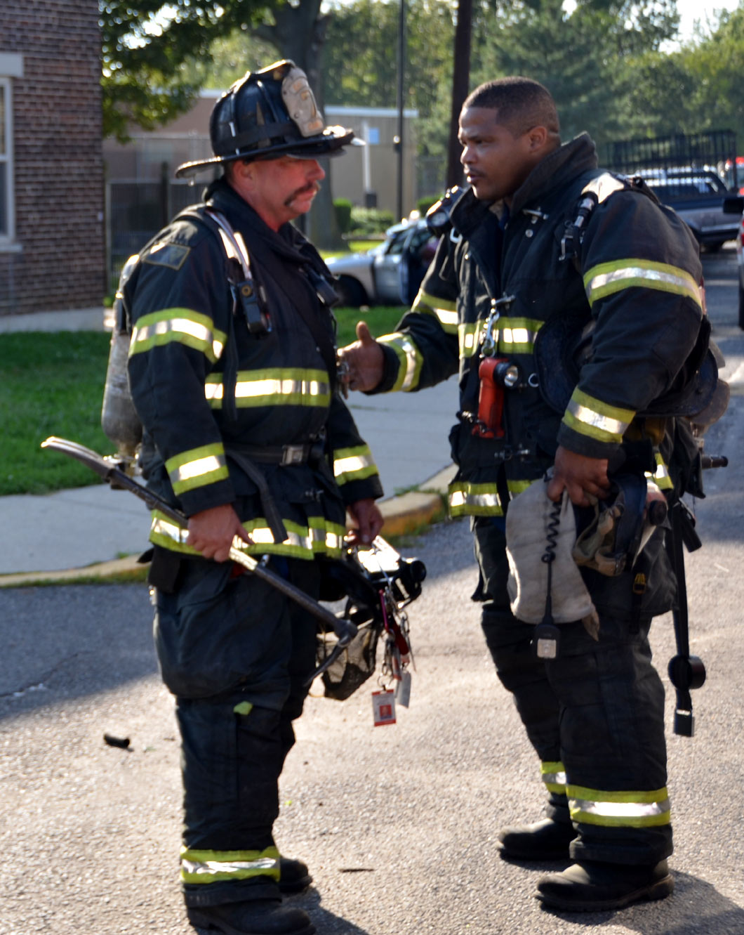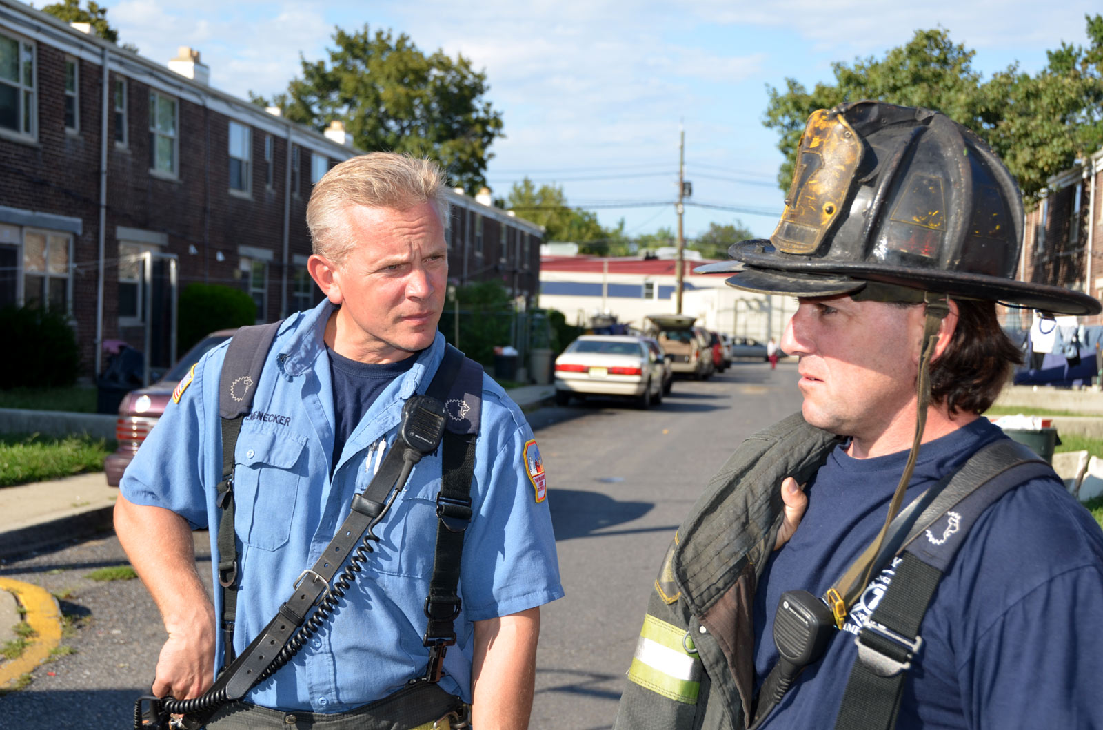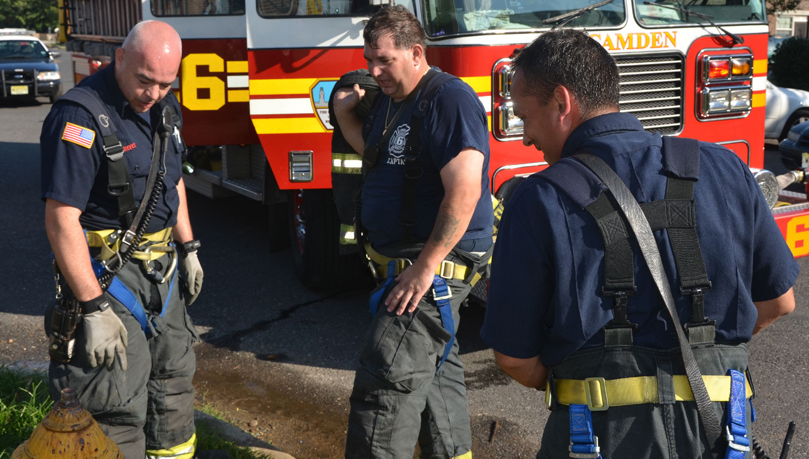After budget cuts brought on in great part by poor leadership at the state level from both political parties under Governors Whitman, McGreevey, Codey, and Corzine the City of Camden laid of a large number of its professional fire department at the end of 2010. Former Chief David A. Yates had offered three plans on how to cope with the situation, all were rejected by parties at Camden's City Hall, and a plan for the Fire Department, which to date I have not been able to find out who authored, was handed back to the Chief. Chief Yates subsequently chose to retire, and Chief Michael Harper was appointed as his replacement. Chief Harper inherited a no-win situation, and the losses began almost immediately. With Fire companies closed in different parts of the city, response times to fire calls increased, homes that could have been saved were destroyed, and civilians injured. June and July saw four large and abandoned industrial properties go up in flames, with one blaze, on on June 9, fat the abandoned warehouse on Chestnut Street that formerly housed the Reliable Tire Company, going to 12 alarms. Ten occupied homes were completely destroyed, as were all the industrial buildings, and thirteen other homes on Chestnut Street were badly damaged by smoke and water. August was relatively quiet, fire-wise, although the department was kept quite busy with other calls, including two jobs relating to the earthquake and numerous non-fire runs relating to Hurricane Irene. Shortly after roll call on the morning of August 26th, the Camden Fire Department was summoned to fight a fire in the 500 block of Jackson Street. Four vacant units, 547, 549, 551, and 553 Jackson Street, were destroyed. Ten minutes before roll call on Friday, 500 block of Jackson Street. Received a few calls for fire in a vacant. Battalion 1 arrived and reported fire on the first floor, middle of the row vacant, ordered Engine 10 to pick up the hydrant at 6th and Jackson, and transmitted the all hands. Car 3 reported at 10 minutes heavy fire 1st and 2nd floors, companies opening up, fire extending to Bravo and Delta exposures. At 20 minutes Car 3 reported multiple handlines stretched and operating, fire conditions still on 1st and 2nd floors. Original fire building 549 Jackson Street. Responding companies were Squad 7, Engine 10, Ladder 1, Ladder 3, Rescue 1, Battalion 1. On the all hands - Engine 1, Engine 9, and Car 3. At 30 minutes Car 3 reported still operating with multiple handlines, making good progress, fire probable will hold. At 40 minutes Car 3 placed fire under control. Time received 0650 hours, Fire under control 0632 hours. The quiet time for for fires ended on September 9, 2011 with a bedroom fire at 3037 Mount Ephraim Avenue. Companies dispatched to 3037 Mt. Ephraim Avenue at 1547 hours, report of smoke from windows. Initial dispatch - Engine 10, Squad 7, Ladder 1, Ladder 3, Rescue 1 Battalion 1. Upon receiving more calls reporting same Engine 1 was added as the second source Engine. Battalion 1 arrived with smoke showing, Engine 10 had a hydrant and was stretching a handline, Rescue 1 was conducting a primary search, and ladder 1 would open up 2nd Floor upon arrival. Car 3 responded and took command. Searches were negative, fire under control at 1610 hours, Fire marshal requested to respond. This fire is being investigated as an arson. Witnesses saw youths running from the property at the time the fire broke out. Twenty-four hours and some odd minutes later, the Camden Fire Department would be called on again, to put out a kitchen fire at 191 Ablett Village. Calls for smoke from Apartment 191 Ablett Village at 1621 hours. Initial dispatch - Engine 11, Engine 1, Ladder 3, Ladder 1, Rescue 1 and Battalion 1. Squad 7 dispatched as second source company. Engine 11 arrived and reported light smoke, being waved in. Battalion 1 arrived and reported Engine 11 was stretching a handline, companies operating with a kitchen fire. At 1635 Battalion 1 reported fire contained to the first floor kitchen, primary search negative, companies ventilating. Fire under control 1635 hours. Many thanks to Fire Dispatcher Matt DeGailler for his help with the accounts of how these fires were handled. As with the web page covering other Camden Fire Department events, if you can identify anyone that I've missed, please comment at the bottom of the page. (I'm terrible at at names and faces). September 15, 2011 |