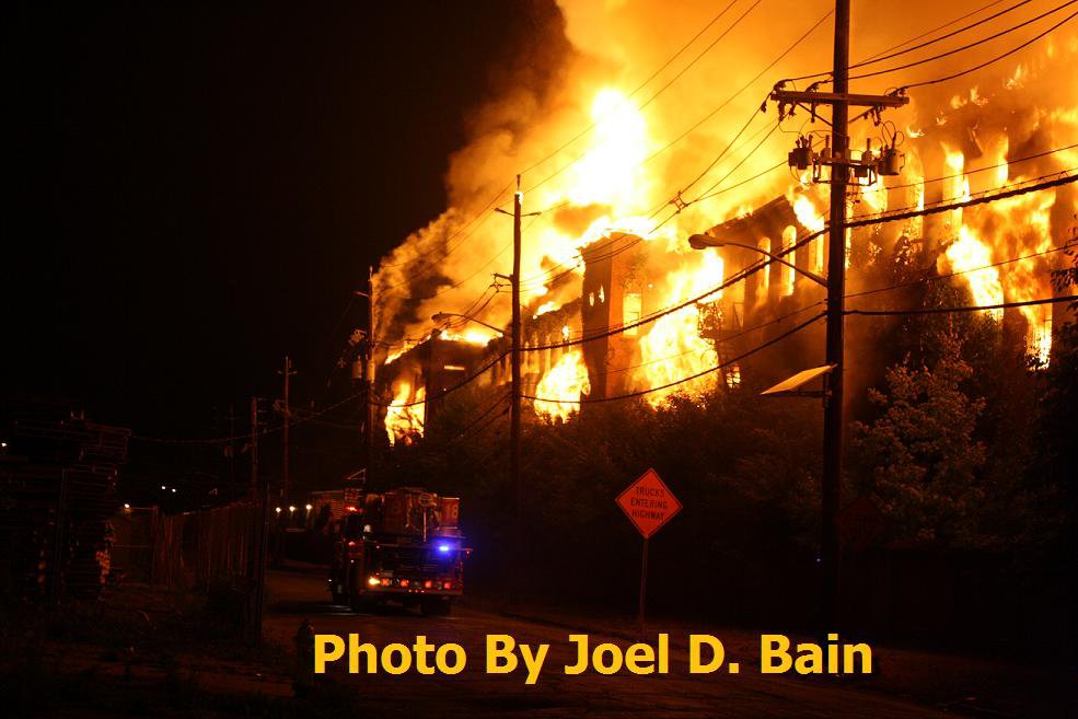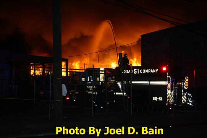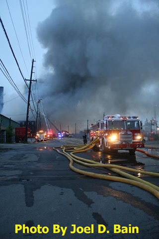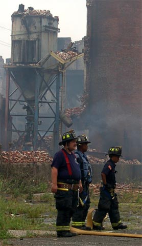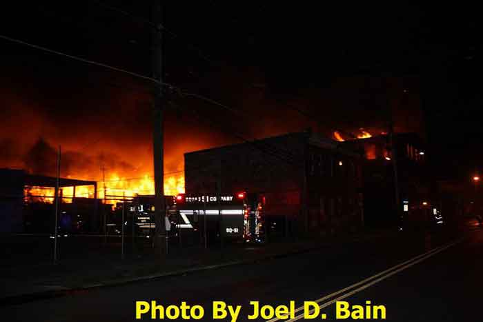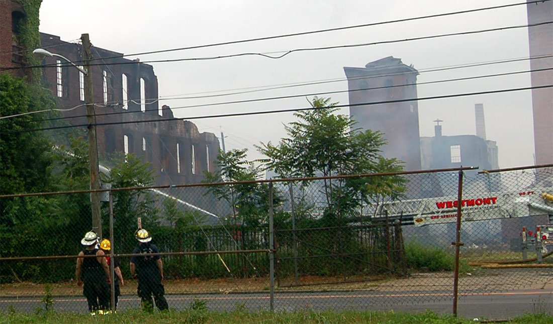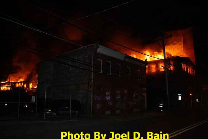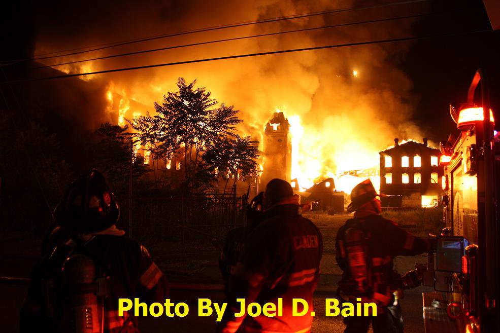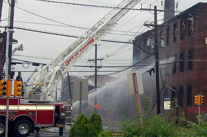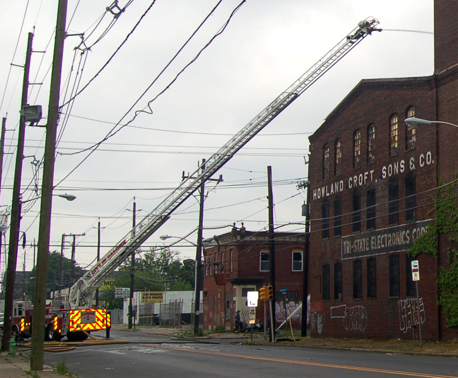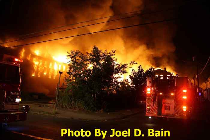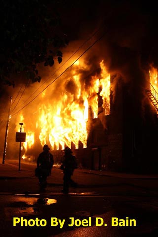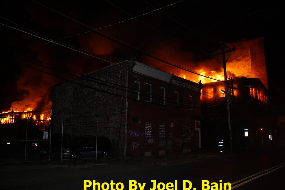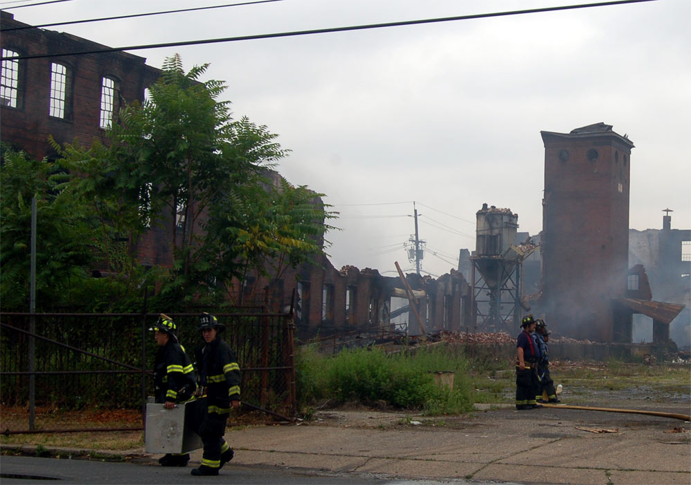 Inferno Ravages City by Lucas K. Murray & Joe Cooney CAMDEN — Just as the Camden Fire Department was catching its collective breath from a massive blaze Thursday, crews responded to a second inferno early Saturday morning. Fire Chief Michael Harper said the department was dispatched at 2:26 a.m. to the rear of the old Howland Croft, Sons & Co. building at 4th and Winslow streets. The fire grew to eight alarms before it was brought under control around 6 a.m. No injuries were reported. Retired Cherry Hill Fire Capt. Larry Colacicco was manning a rehab station on Broadway a couple blocks north of the fire scene around noon on Saturday. The former member of the Fire Marshal's Office said it was unusual to have two large fires so close together. "Two huge vacant building fires in three days seems a little weird to me," Colacicco said. "(If I were still working) I'd be in that building right now looking around for clues." "The three-story building that was at the corner of 4th and Winslow had a cattle chute that connected to another section," Harper reported. "When crews arrived it was localized back there, and they tried to cut it off." Harper explained that firefighters immediately began to attack the fire, but told him it was the "fastest-moving fire they'd ever seen." "When they looked up, the fire was already out to Broadway." The 130-year-old building that housed Croft's Linden Worsted Mills manufactured yarn and other textiles up until about 1950. A block long and a block wide, the L-shaped building is similar to the one that went up in flames Thursday about a mile away in the city's Gateway section. The 12-alarm fire at an abandoned tire warehouse required 59 other departments from three counties. Saturday's fire brought in 20 companies. Harper said the issues that faced firefighters Thursday—heat and broken fire hydrants—weren't significant Saturday. "This is the best place to have a fire," he explained. "We have plenty of water on Broadway, there's a large water main on 4th street in the back. But because we had to use so many aerial streams, we had to special call the Philadelphia Fire Department's fireboat." |