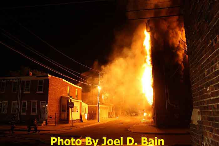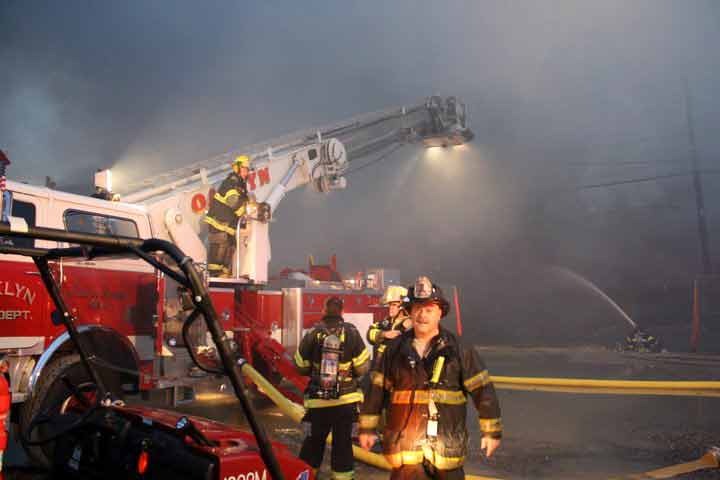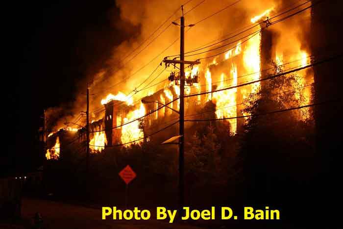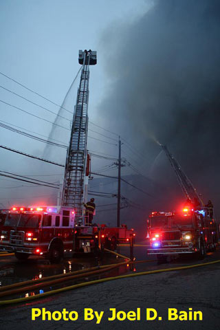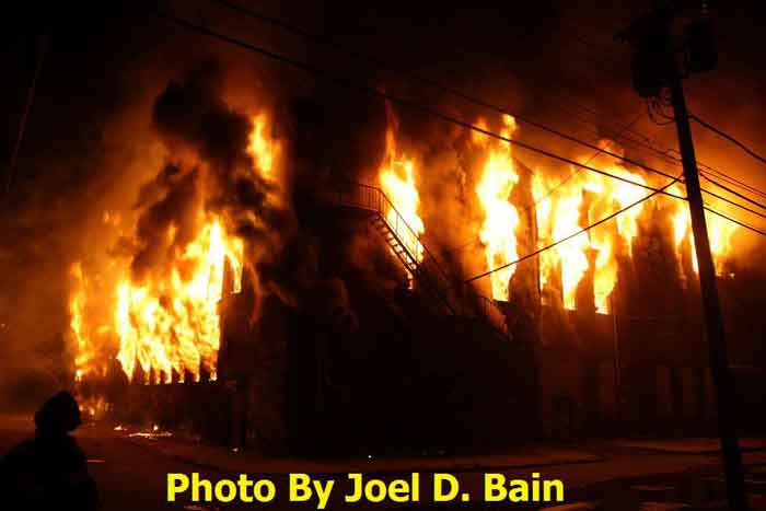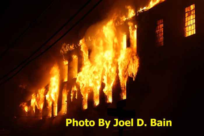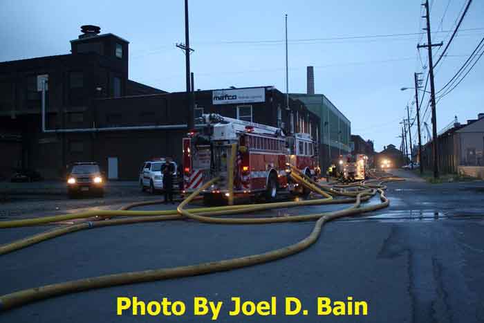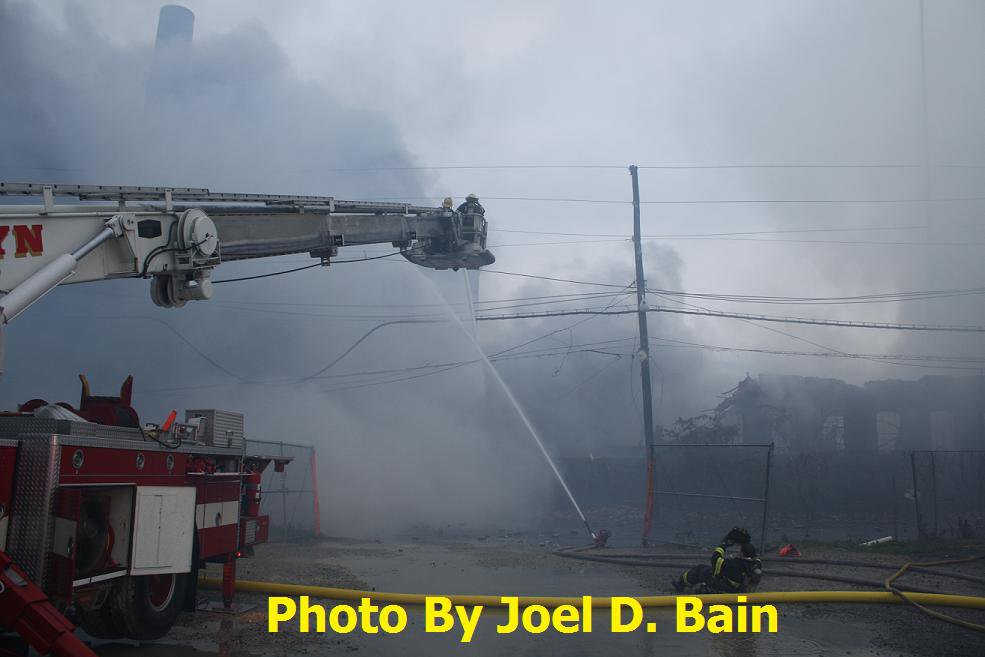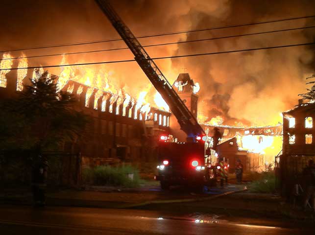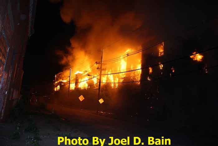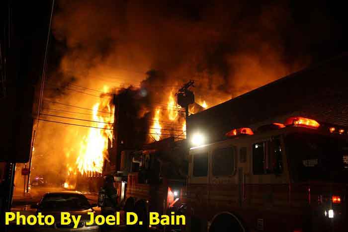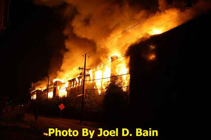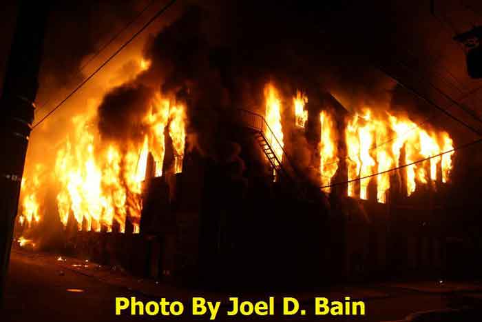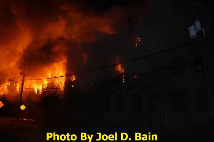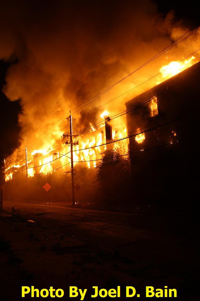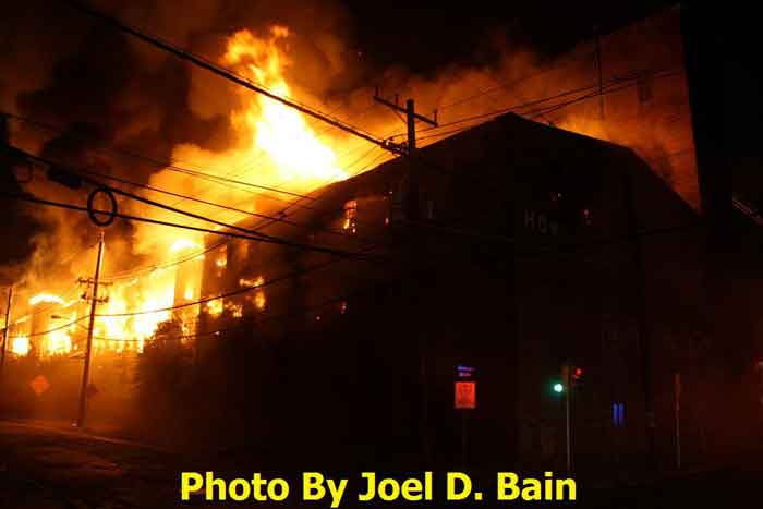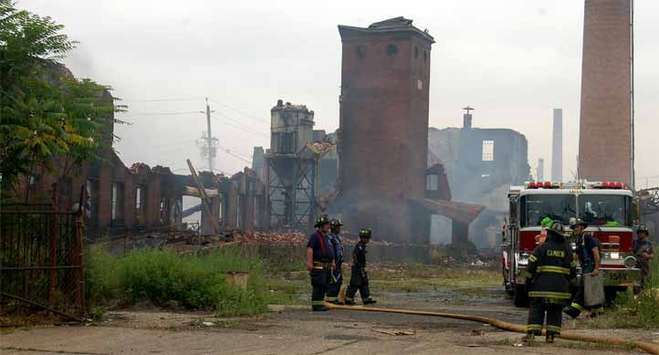 Inferno Ravages City by Lucas K. Murray & Joe Cooney CAMDEN — Just as the Camden Fire Department was catching its collective breath from a massive blaze Thursday, crews responded to a second inferno early Saturday morning. Fire Chief Michael Harper said the department was dispatched at 2:26 a.m. to the rear of the old Howland Croft, Sons & Co. building at 4th and Winslow streets. The fire grew to eight alarms before it was brought under control around 6 a.m. No injuries were reported. Retired Cherry Hill Fire Capt. Larry Colacicco was manning a rehab station on Broadway a couple blocks north of the fire scene around noon on Saturday. The former member of the Fire Marshal's Office said it was unusual to have two large fires so close together. "Two huge vacant building fires in three days seems a little weird to me," Colacicco said. "(If I were still working) I'd be in that building right now looking around for clues." "The three-story building that was at the corner of 4th and Winslow had a cattle chute that connected to another section," Harper reported. "When crews arrived it was localized back there, and they tried to cut it off." Harper explained that firefighters immediately began to attack the fire, but told him it was the "fastest-moving fire they'd ever seen." "When they looked up, the fire was already out to Broadway." The 130-year-old building that housed Croft's Linden Worsted Mills manufactured yarn and other textiles up until about 1950. A block long and a block wide, the L-shaped building is similar to the one that went up in flames Thursday about a mile away in the city's Gateway section. The 12-alarm fire at an abandoned tire warehouse required 59 other departments from three counties. Saturday's fire brought in 20 companies. Harper said the issues that faced firefighters Thursday—heat and broken fire hydrants—weren't significant Saturday. "This is the best place to have a fire," he explained. "We have plenty of water on Broadway, there's a large water main on 4th street in the back. But because we had to use so many aerial streams, we had to special call the Philadelphia Fire Department's fireboat." |