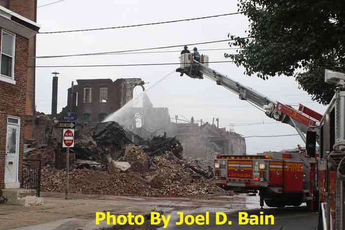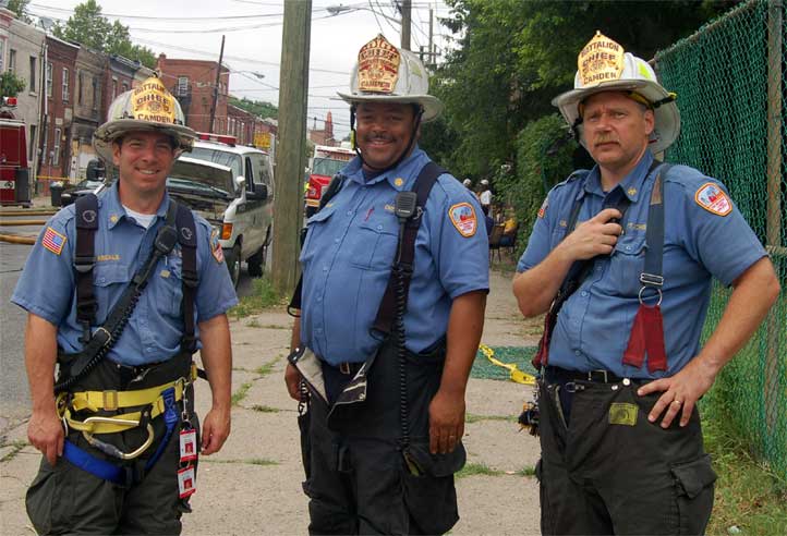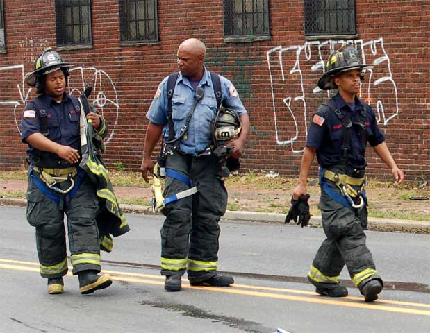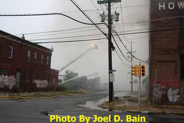 After budget cuts brought on in great part by poor leadership at the state level from both political parties under Governors Whitman, McGreevey, Codey, and Corzine the City of Camden laid of a large number of its professional fire department at the end of 2010. Former Chief David A. Yates had offered three plans on how to cope with the situation, all were rejected by parties at Camden's City Hall, and a plan for the Fire Department, which to date I have not been able to find out who authored, was handed back to the Chief. Chief Yates subsequently chose to retire, and Chief Michael Harper was appointed as his replacement. Chief Harper inherited a no-win situation, and the losses began almost immediately. With Fire companies closed in different parts of the city, response times to fire calls increased, homes that could have been saved were destroyed, and civilians injured. On June 6, 2011 a vacant two-story twin at 821-823 of Chestnut Street was destroyed by fire. Three days later, on June 9, fire broke out in the abandoned warehouse on Chestnut Street that formerly housed the Reliable Tire Company. When the few available local units arrived on the scene, hydrants were found to have been vandalized, delaying efforts to extinguish the blaze, which soon went to 12 alarms. Units were called in from surrounding communities, obviously taking a great deal of time to arrive on scene. In the mean time, high winds caused the fire to spread to adjacent buildings that formerly were occupied by the Camden Pottery Company, and homes on Orchard, Louis, and Mount Vernon Streets. Ten occupied homes were completely destroyed, as were all the industrial buildings, and thirteen other homes on Chestnut Street were badly damaged by smoke and water. Conditions and results of this blaze mimicked in almost every way the Poet's Row fire of August, 1972 where a vacant leather factory once occupied by the John R. Evans & Company caught fire and two and one-half full city blocks of homes on Byron, Burns, and Milton Streets were completely and utterly destroyed… a deadly combination of an old and abandoned industrial building, short-staffed fire department, low water pressure and high winds being among the contributing factors. In the early morning hours of June 11, 2011 another abandoned industrial building was reported to be on fire. The former Howland Croft, Sons & Company mill on Broadway between Winslow and Jefferson Streets was devastated by a blaze that went to eight alarms. One house at the corner of South 4th and Winslow and three homes on Winslow Street were damaged by smoke and water, but fortunately, none were destroyed. Late in August of 2011, the Camden Police Department put out a "Be On The Look Out" for two fugitives who had been squatting in vacant buildings in South Camden for several months in connection with the Howland Croft fire.. The sad part is that both of these persons were wanted and had outstanding warrants for their arrest prior to the Howland Croft fire, and by rights should have been picked up and incarcerated long before the fire was set. Once again, expediency and the unwillingness to deal with the criminal population, using the excuse "the homeless are the victims" resulted in innocent and law-abiding families being forced from their homes. A government that willingly refuses to protect its citizens has become a de facto accomplice in crimes against them. As with the web page covering other Camden Fire Department events, if you can identify anyone that I've missed, please comment at the bottom of the page. (I'm terrible at at names and faces). July 3, 2011 |