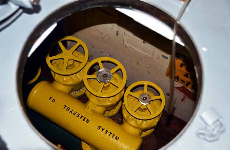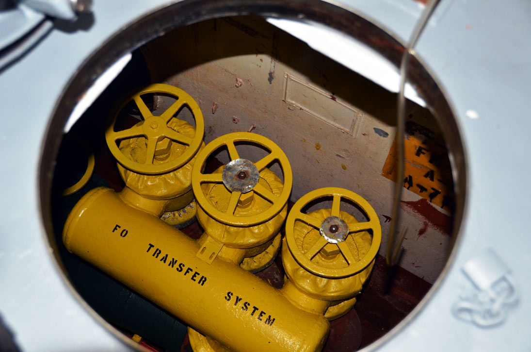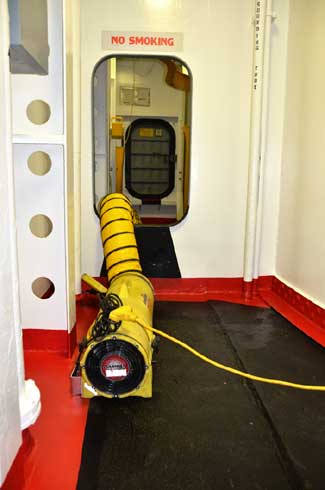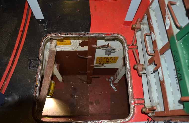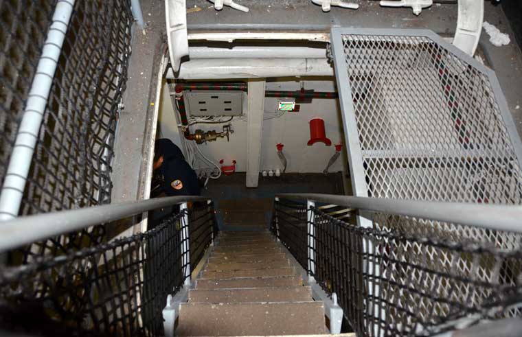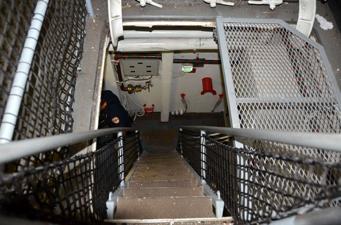 below the main deck. The further down one goes, the steeper the stairs are. |