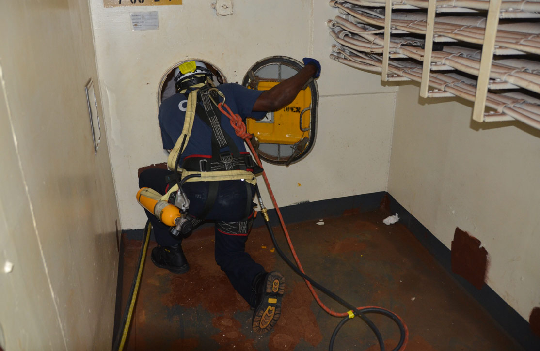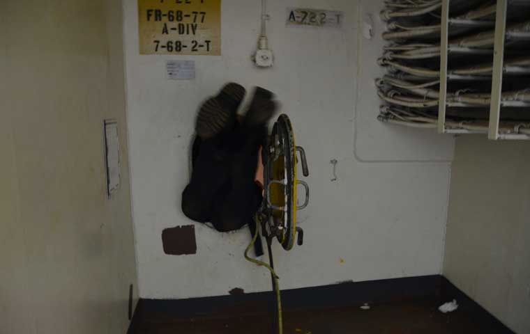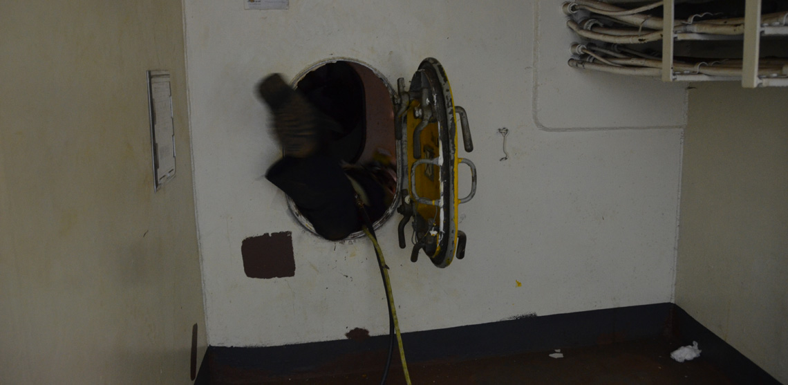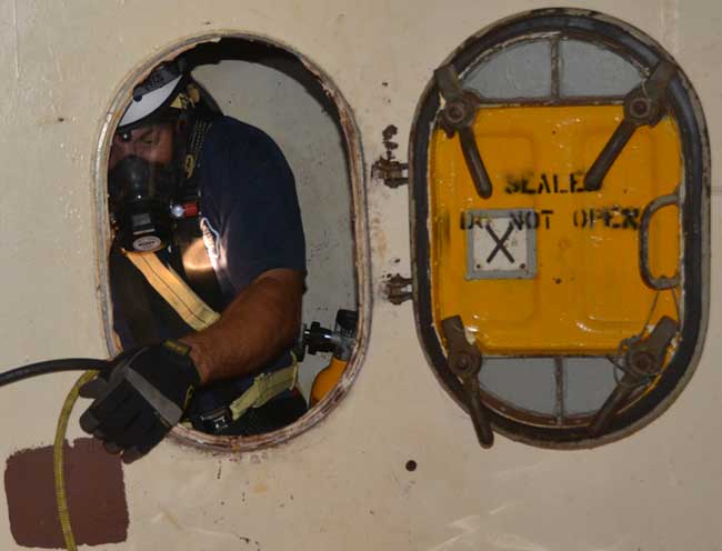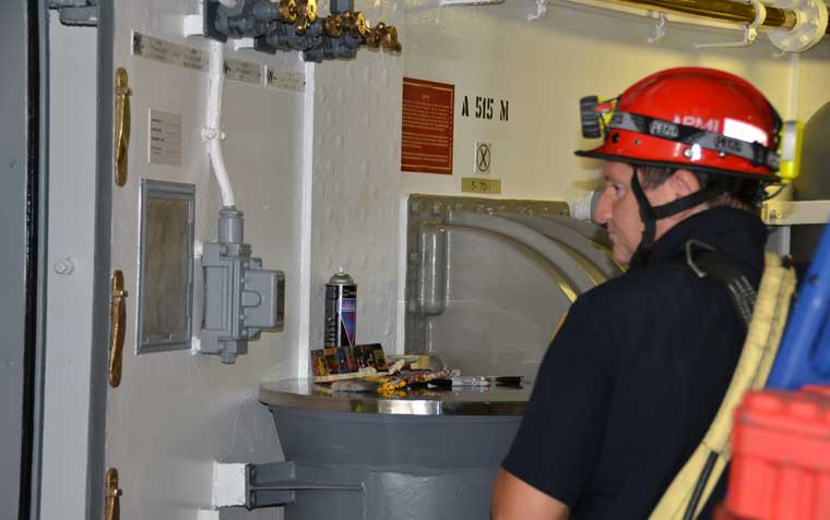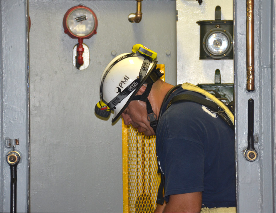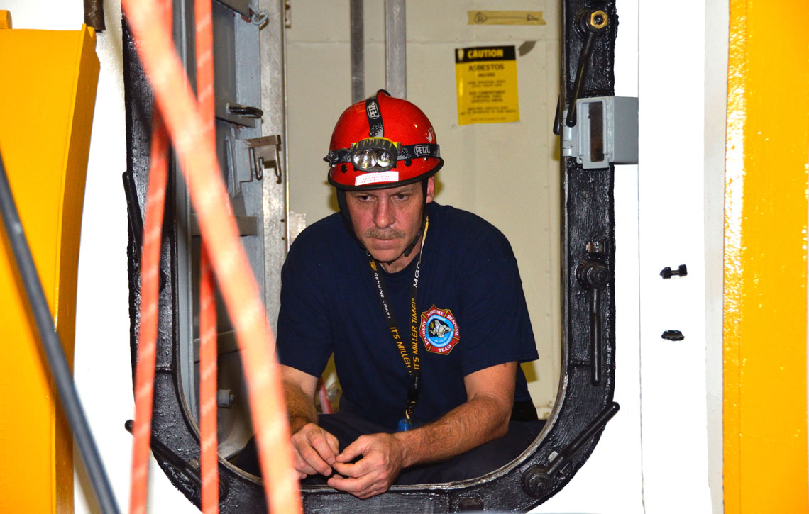 Going throught that hole was a learning process…a very small hole and a somewhat overly large me. This is a problem that rescue personnel face, as they are going in with air tanks and all sorts of other equipment strapped on. One has to be very careful not to get caught on something going while going about the business at hand. |