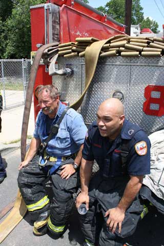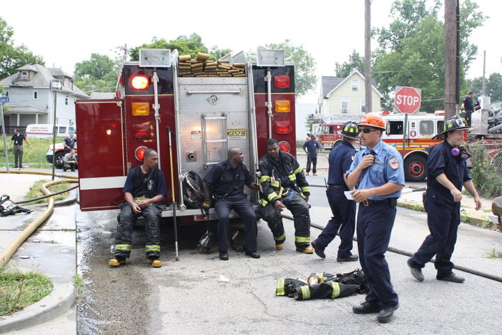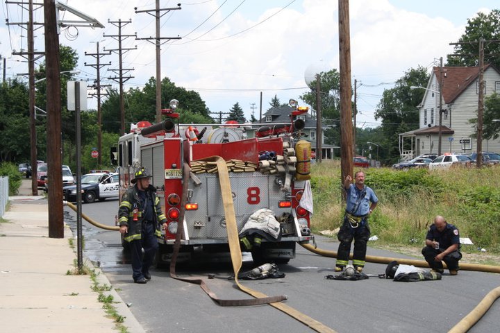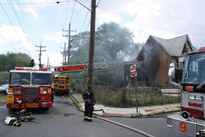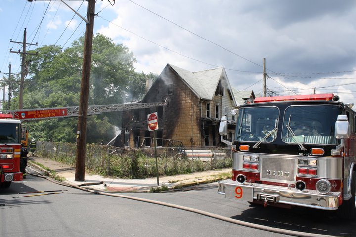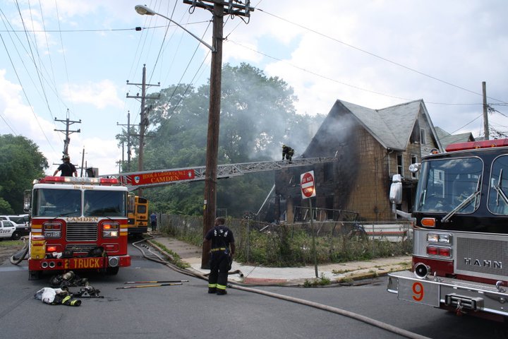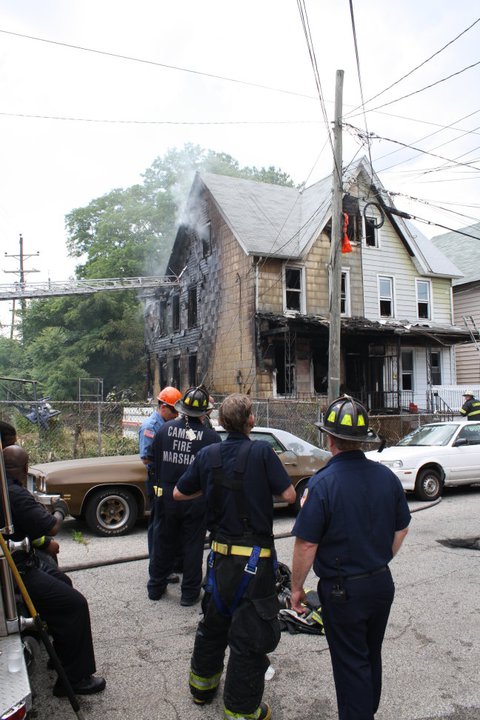 After budget cuts brought on in great part by poor leadership at the state level from both political parties under Governors Whitman, McGreevey, Codey, and Corzine the City of Camden laid of a large number of its professional fire department at the end of 2010. Former Chief David A. Yates had offered three plans on how to cope with the situation, all were rejected by parties at Camden's City Hall, and a plan for the Fire Department, which to date I have not been able to find out who authored, was handed back to the Chief. Chief Yates subsequently chose to retire, and Chief Michael Harper was appointed as his replacement. Chief Harper inherited a no-win situation, and the losses began almost immediately. With Fire companies closed in different parts of the city, response times to fire calls increased, homes that could have been saved were destroyed, and civilians injured. On June 6, 2011 a vacant two-story twin at 821-823 of Chestnut Street was destroyed by fire. Three days later, on June 9, fire broke out in the abandoned warehouse on Chestnut Street that formerly housed the Reliable Tire Company. When the few available local units arrived on the scene, hydrants were found to have been vandalized, delaying efforts to extinguish the blaze, which soon went to 12 alarms. Units were called in from surrounding communities, obviously taking a great deal of time to arrive on scene. In the mean time, high winds caused the fire to spread to adjacent buildings that formerly were occupied by the Camden Pottery Company, and homes on Orchard, Louis, and Mount Vernon Streets. Ten occupied homes were completely destroyed, as were all the industrial buildings, and thirteen other homes on Chestnut Street were badly damaged by smoke and water. Conditions and results of this blaze mimicked in almost every way the Poet's Row fire of August, 1972 where a vacant leather factory once occupied by the John R. Evans & Company caught fire and two and one-half full city blocks of homes on Byron, Burns, and Milton Streets were completely and utterly destroyed… a deadly combination of an old and abandoned industrial building, short-staffed fire department, low water pressure and high winds being among the contributing factors. In the early morning hours of June 11, 2011 another abandoned industrial building was reported to be on fire. The former Howland Croft, Sons & Company mill on Broadway between Winslow and Jefferson Streets was devastated by a blaze that went to eight alarms. One house at the corner of South 4th and Winslow and three homes on Winslow Street were damaged by smoke and water, but fortunately, none were destroyed. Rumors of arson were flying through the city when, on Tuesday, June 14 a vacant twin at 107 North 34th Street was gutted, with the adjacent home taking a great deal of smoke and water damage. As with the web page covering other Camden Fire Department events, if you can identify anyone that I've missed, please comment at the bottom of the page. (I'm terrible at at names and faces). July 3, 2011 |