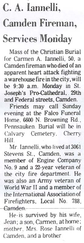 After fighting a dump fire in the city, Frank Iannelli collapsed