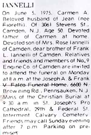 Carmen's death, the grief of the surviving members of the Iannelli