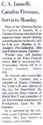 in the firehouse at 27th and Federal streets and died of a heart