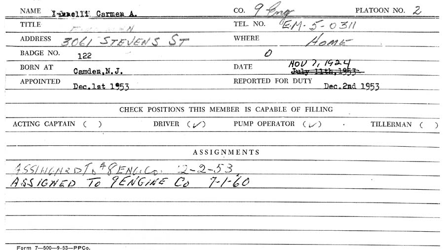 joining the fire department in 1948. Five years later Carmen