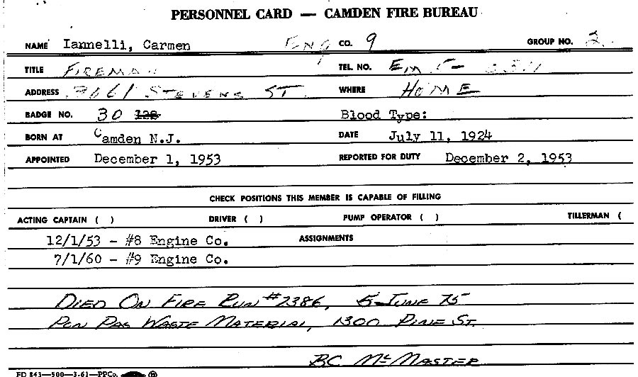 he landed a job as a hoseman with the Camden Fire Department, a