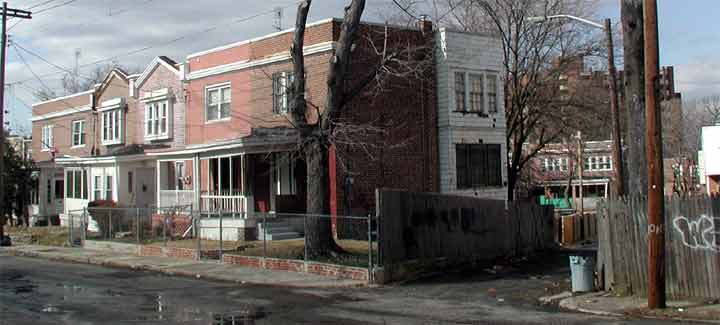 Above Left: Rear of north 32nd street Rowhomes * Above Right: Inside a home | ||