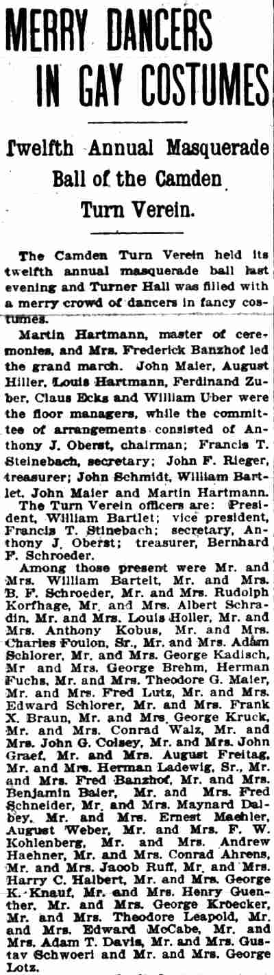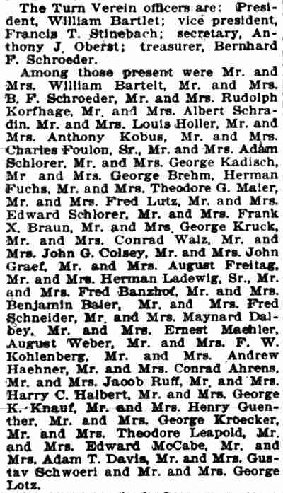 Louis Hartmann - Ferdinand Zuber - Claus Ecks - William Uber - Anthony Oberst - Francis T. Steinbach John F. Rieger - John Schmidt - William Bartelt - Bernhard F. Schroeder - Rudolf Korfhage Albert Schradin - Louis Holler - Anthony Kobus - Charles Foulon Sr. - Adam Schlorer - George Kadisch George Brehm - Herman Fuchs - Theodore G. Maier - Fred Lutz - Edward Schlorer - Frank X. Braun George Kruck - Conrad Walz - John G. Colsey - John Graef - August Frietag - Herman Ladewig Benjamin Baier - Fred Schneider - Maynard Dalbey - Ernest Maehler - August Weber - F.W. Kohlenberg Andrew Haehner - Conmrad Ahrens - Jacob Ruff - Harry C. Halbert - George K. Knauf Henry Guenther - George Kroecker - Theodore Leopold - Edward McCabe - Adam T. Davis Gustav Schwoeri - George Lotz |