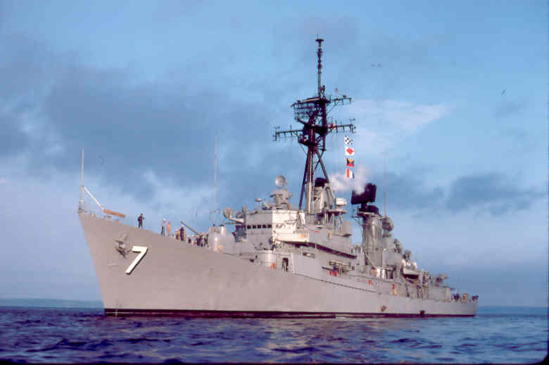 On April 22, 1959 the guided missile-firing destroyer USS HENRY B. WILSON DDG-7 was launched at Bay City MI, with Mrs. Patrick Hurley, Admiral Wilson's daughter, attending. The Wilson served in the Pacific and off the coast of Vietnam during that conflict. After along and distinguished career she was converted into a power barge in 1996, and sunk as a target off the coast of California on August 15, 2003. Click here for more pictures and information on the USS HENRY B. WILSON DDG-7. |