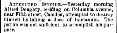 Doughty died young, on August 7, 1878, leaving his wife to raise
