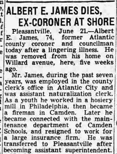 Atlantic City area, and moved to Pleasantville, New Jersey. The 1920 Census shows that