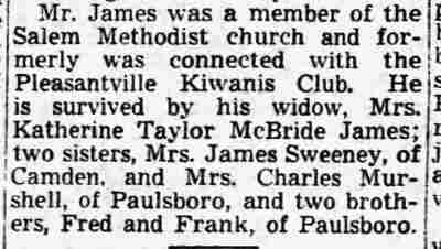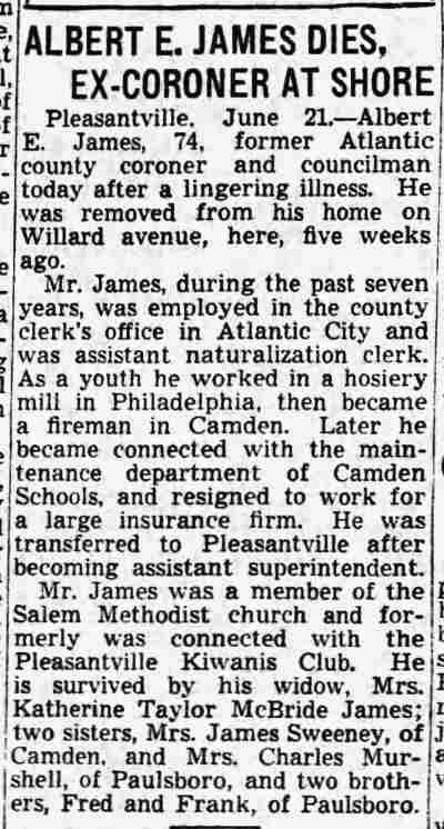 and settled in Camden's Eighth Ward. Edward James Married Katherine Taylor McBride