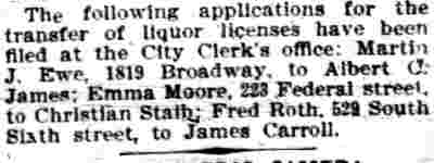 of 1909 Albert James had had enough of serving liquor. He took a position as an