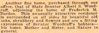 ALBERT SMITH WOODRUFF JR. was born in 1886 in Hopewell Township, Cumberland County NJ. A prominent lawyer in Camden NJ, he made his offices at the Woodruff Building at 328 Market Street in Camden. He made his home in Merchantville with wife Isabel, at 101 Browning Road. In 1918 Albert S. Woodruff, Alfred L. Sayres, William C. Davis, Mark Bulifant, Dr. Orris W. Saunders, Dr. William E. Miller and O.O. Phillips founded the Parkside Trust Company, a bank which stood at the corner of Haddon Avenue and Kaighn Avenue. This bank later merged with the West Jersey Trust Company. Albert S. Woodruff became involved in politics as a Republican, and was a delegate to Republican National Convention from New Jersey in 1924. He served as a Republican state senator from Camden County from 1924 to 1926 and again from 1933 to 1935. He later served as vice-chancellor for Camden County. In the mid-1930s, Albert Woodruff became involved in a political feud with David Baird Jr. A bitter struggle between Woodruff and his political ally Elizabeth Verga and the organization controlled by Baird Jr. and Florence Baker in May of 1934. Although Woodruff ran successfully, his slate was defeated. The battles between Woodruff and Baird Jr. so divided the Republican party that the organization lost control of Camden's city government to George Brunner's Democrat organization. In the decades that followed the Woodruff-Baird feud, the Republican party in Camden over time virtually ceased to exist. Albert S. Woodruff remained involved in local politics, but did not hold elected office again. He passed away in 1949. |