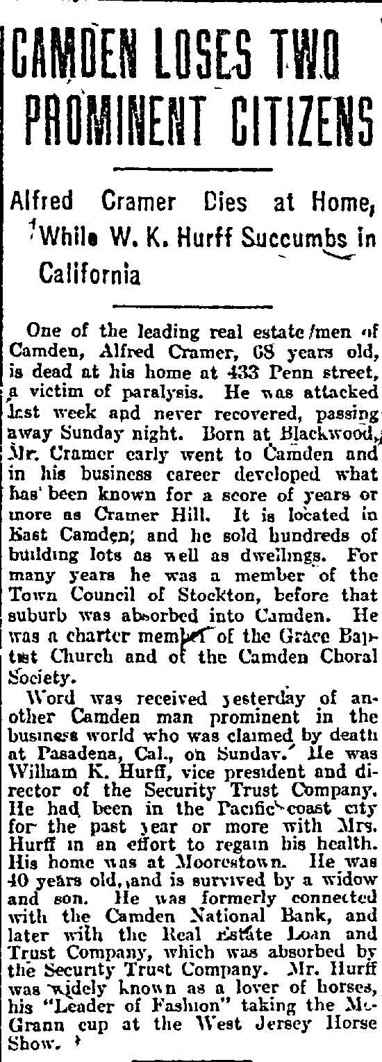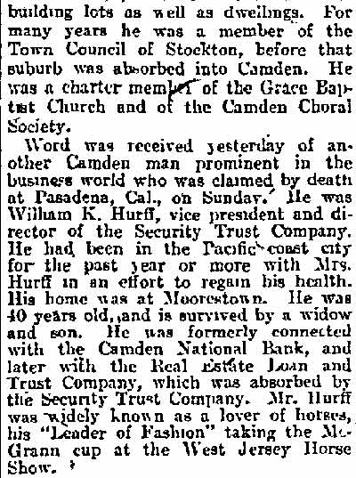 Church - Camden Choral Society William K. Hurff - Security Trust Company - Camden National Bank - West Jersey Horse Show |