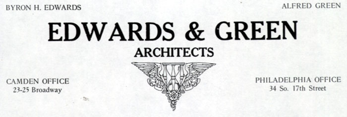 ALFRED GREEN was born January 31, 1895 in Philadelphia PA. He received his training in architecture at the Beaux Arts Institute of Design in Philadelphia, probably through the T-Square Club. By 1917 he is listed in the Philadelphia city directories as an architect. Green was registered to practice in Pennsylvania in 1922 and in New Jersey in 1923. He joined the national AIA in 1944 and was also a member of its New Jersey Chapter. While in New Jersey, he also served as president of the New Jersey Board of Architects. In December of 1923 Alfred Green partnered with Byron Edwards in an architectural firm, known as Edwards & Green, in Philadelphia. In 1928 Edwards & Green moved their offices to Camden. During the first years in Camden Alfred Green supervised construction at the Camden County Courthouse. Among the buildings that Edwards & Green were responsible were the Chalcar apartments at 218-222 Cooper Street, the Talmud Torah building at 621 Kaighn Avenue, a commercial building at 548 Federal Street, the original Camden Convention Hall, and the John W. Mickle School Annex at South 6th and Van Hook Streets. This building is still in use in 2007, as the Creative Arts High School. Alfred Green was registered as an architect in Pennsylvania in 1922 and in New Jersey in 1923. He joined the national American Institute of Architects in 1944 and was also a member of its New Jersey chapter. While in New Jersey, he also served as president of the New Jersey Board of Architects. Alfred Green's last years were spent as a resident of Baltimore MD. He passed away on August 16, 1978. |