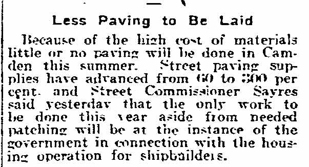 KAIGHN AVE. FIRE FIRE CAPTAIN MAY DIE, FOUR OTHERS INJURED; DAMAGE IS $200,000 Economy Store and Other Buildings Near Broadway wept by Flames Early This Morning Falling Debris Carries Men Through Roof And Into Cellar Sleeping Inmates of Apartments Roused and Invalid Carried to Safety- Mayor Sees Rescues Mayor Ellis has ordered an investigation to determine the cause of the $2000,000 fire which swept the properties at 427 and 429 Kaighn Avenue and caused injury to five firemen, one of whom may be fatally hurt. The fire centered about the property occupied by the Economy Store, formerly Handle’s, and quickly spread to four adjoining buildings. The fireman whose recovery is despaired of is Captain Martin B. Carrigan, of Engine Company No. 2, Fifth and Arch Streets. Carrigan, who lives at 618 West Street, is suffering from a fractured skull and severe burns and cuts of the face, legs, and body. He is unconscious at Cooper Hospital. The firemen were injured when a wall, weakened by the intense heat, crumbled and crashed through a roof upon which they were standing, dragging them through the floor below, and into a cellar. Sensational rescues followed as police, firemen, and citizens with bare hands tore at the hot debris. The men were quickly extricated and carried to the street. “We certainly shall investigate this fire,” the Mayor declared today. “Just what was the cause and who is to blame has not been determined but there will be a thorough investigation.” “There have been too many of these fires during the past few weeks” continued the mayor. “Surely all of them did not just happen and I am sure there has been someone responsible in one or two of the fires.” The conflagration was one of the most spectacular of a series of large fires that have visited the city in the past six weeks. The block in which it occurred- Kaighn Avenue between Broadway and Fourth Street is one of the most prominent business squares in Camden. Flames shot 200 feet in the air, giving the sky a fiery hue and attracted attention for miles before the firemen brought it under control. The flame-lit sky was clearly seen in Philadelphia, Merchantville, East Camden, Gloucester and other communities. More than a score of families living in the vicinity were forced to flee from their homes in scant attire when the fire threatened them. They were cared for by neighbors. Fireman George Boone, 46 years old, of Engine Company No. 2, also is in a serious condition. He is suffering from burns of the right hand, right thigh and foot and probable internal injuries. Boone lives at 607 Mount Vernon Street. The other injured foremen are: John Voll, 22 years old, 509 Royden Street: both hands badly burned. C.J. Andrus, aged 31 years, 570 Mount Vernon Street: burns of hands and legs. Harold Lorang, 29 years old, 19 Hudson Street: burns of right hand and legs and sprained ankle. Firemen Prove Heroes Carrigan and Boone are in the hospital. The other firemen were discharged after their wounds were dressed. After being released from the hospital they returned to the scene of the fire and insisted upon continuing their duties. Chief Peter B. Carter, however, ordered them home. Most of the loss was suffered by the Economy Store. A few charred walls remain of the large building. The interior was completely gutted. It was estimated today that the damage to that property will total $60,000 At least $50,000 damage, it was said, was done to the stock. Morris Handle, local theatrical man, who owns the building, declared today that the property was insured for $30,000. “My loss will be quite heavy,” said Mr. Handle. “The insurance will not pay one-half the property damage.” The adjoining building at 431 Kaighn Avenue is occupied by Dr. S.I. Yubas, optometrist, and L.R. Yubas, his father, a jeweler. Invalid is Rescued The rear and upper floors of the Yubas property were gutted and the stock sustained a heavy loss, due to water and smoke. The damage will total $40,000, Mr. Yubas estimated today. Five persons who were asleep on the upper floors of the Yubas dwelling had narrow escapes. They were awakened by Samuel Goldstein, haberdasher, 417 Kaighn Avenue, who discovered the fire in the Economy Store and turned in the alarm. Mrs. L.R. Yubas, an invalid, was rescued with difficulty. The property occupied by Mrs. Sadie Bodner, a widow, at 433 Kaighn Avenue, as a house furnishings store, was scorched and also damaged by water and smoke. Adjoining the Economy Store on the west at 425 Kaighn Avenue is a vacant one-story structure, formerly occupy by the United Beef Company. Firemen were on the roof of that building when the west wall of the Economy Store collapsed. The wall tumbled down on the small roof and hurled the firemen through a hole in the roof, through the floor and then into the cellar. Several Stores Damaged Three policemen, Joseph Sparks, Thomas Cheeseman, and George Hill- and several spectators braved the fire and smoke to rescue the trapped firemen. The property at 423 Kaighn Avenue, occupied by the Charles Jamison Department Store, was damaged in the rear and the stock ruined by water and smoke. The Kresge Five-and-Ten-Cent Store, at 519-531 Kaighn Avenue, was also damaged by water. Louis Richelson, who owns the properties from 519 to 525 Kaighn Avenue, was unable to estimate his loss today. Collapse of Wall Hundreds of spectators, who were watching the fire from the opposite side of the street, shuddered as they saw a brick wall, weakened by the intense heat, totter and sway. Before the firemen on the smaller roof below could scurry to safety, it collapsed. A groan escaped the crowd as they heard the cries of the entrapped firemen and the deafening thud of the brocks as they landed on the roof where the firemen were at work. As the full weight of the brocks struck the roof, it caved in forming a gaping hole. The firemen were literally swept into the opening. The bricks tumbled down, causing another hole in the flo