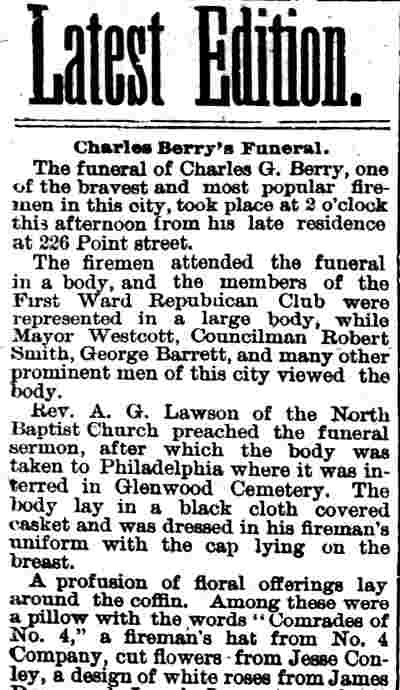 Lawson North Baptist Church - Engine Company 4 - Jesse Conley - James Dunn - Joseph Love Samuel Elfreth - Amedee Middleton - Frank Turner - Edward Hartman - Walter Browning Robert Steer - William Bogia - Charles Jefferson Kay - George Martin |