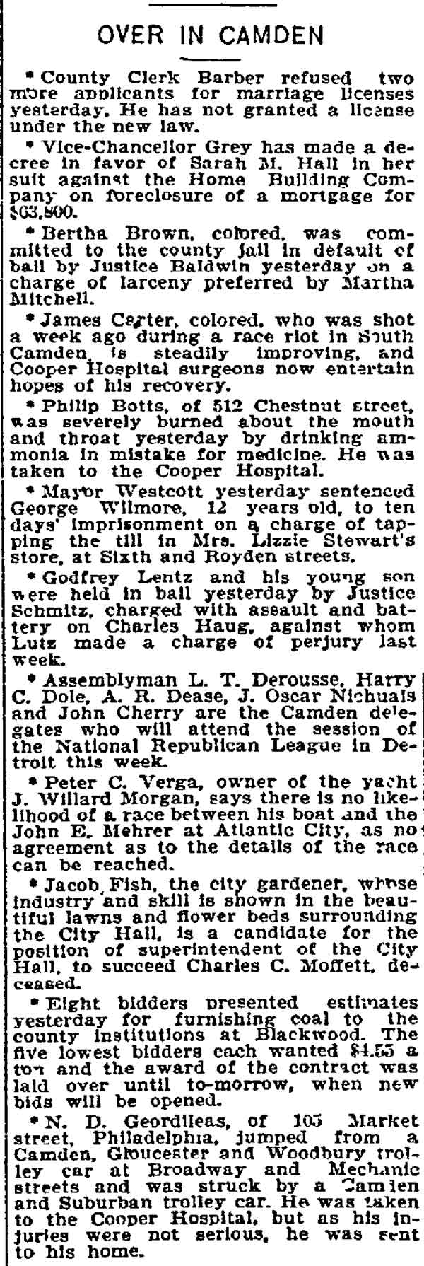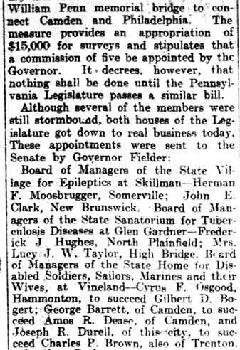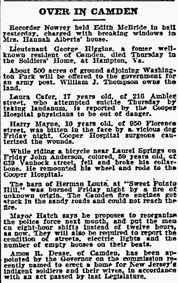 S. Burrough Susanna Danser - Julian K. Potter - G. Bovilla Fry - George T. Phillips Helen E. Herbert - Camden Manual Training and High School Camden Lodge of Elks - Frank Healy - Peter Verga - Frank Gardner Amos R. Dease - Levi Farnham - Albert West Broadway - Federal Street - Linden Street |