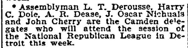 A. Bergen Isaac Githens - George Barrett - Frank Welch - Howland Croft - Samuel Bakley David Freeman Sr. - Albion Lane William Ireton - Howard Lee - Amos R. Dease Christopher Mines Jr. - john brothers - James Hewitt - John C. Edwards Malachi D. Cornish - J.Willard Somers - Frank C. Somers - John Wells - William H. Day Dilwyn Pettit - J. Milton Powell - George Denny - Everett Ackley - Samuel M. Gaul Joseph Brown - Frederick Parker - John H. Milton - David Rankin - Samuel Roach James Brown - Isaac Robinson - William K. Price - Reuben Gaskill John W. Everman - Samuel H. Mourey - William H. Smith Herman Heimbold - Thomas Watson - E. Thompson |