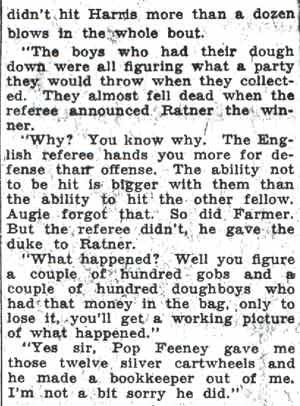 FOR DALY BANQUET Chief Rain-on-the-Rump, whose tepee is pitched in Medicine Hat, Montana, is expected to send his son as an envoy when John Daly, First ward freeholder, is feted on February 17. The banqet will be held in Convention Hall and is expected to be the largest occasion of its nature known in Camden in years. Daly was showing the letter, which he said had come from his old friend and sachem in Montana, and said he would make the Redskin welcome with an Injun war-whoop. The pemmican which will be spread before the chieftain and others who gather will comprise a menu which paleface and aborigine alike might relish. Clarence E. Moullette, chairman of the banquet committee, reported the list of guests will comprise a real Who's Who in Camden. Invitations have been sent to Congressmen Charles A. Wolverton and Elmer Wene, Gov. A. Harry Moore, | Senator John Milton, Senator Robert M. LaFollette and others, prominent in national and state politics. Mayor George E. Brunner and his fellow commissioners will represent the city, while the Federal, state and municipal judiciary also will be represented. Freeholder Andrew J. McMahon will be toastmaster, while a new position, honorary toastmaster, will be conferred on Frank H. Ryan, managing editor of the Courier-Post newspapers. |