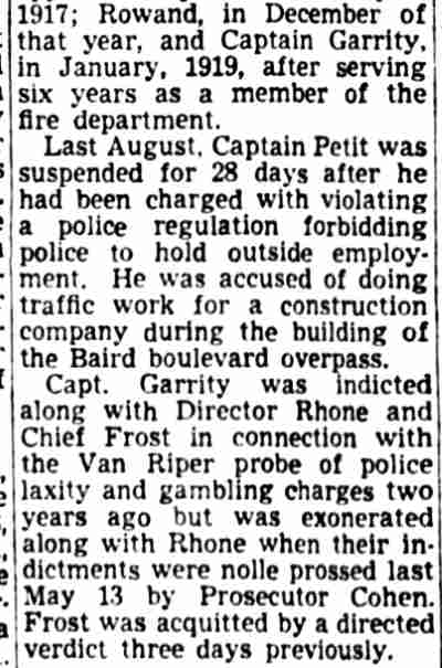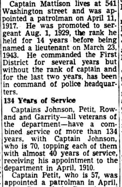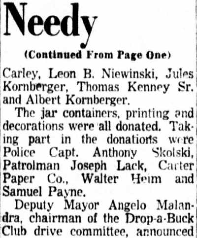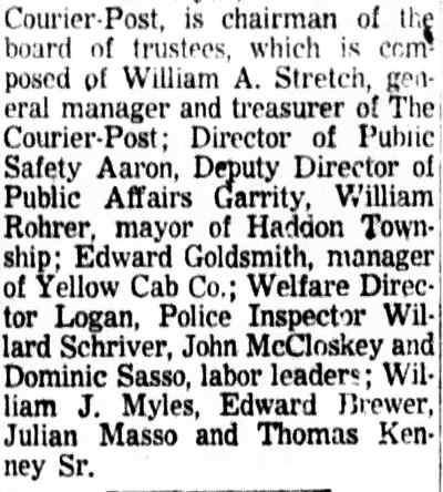 Albert Kornberger Anthony Skolski - Carter Paper Company - Joseph Lack - Walter Heim - Samuel D. Payne William Rohrer - Angelo D. Malandra - Joseph J. McComb - Lawrence J. Wisely - Frank H. Ryan William A. Stretch - E. George Aaron - Edward Goldsmith - Willard Schriver - John McCloskey Dominick Sasso - William J. Myles - Edward Brewer - Julian Masso - Edward Garrity |