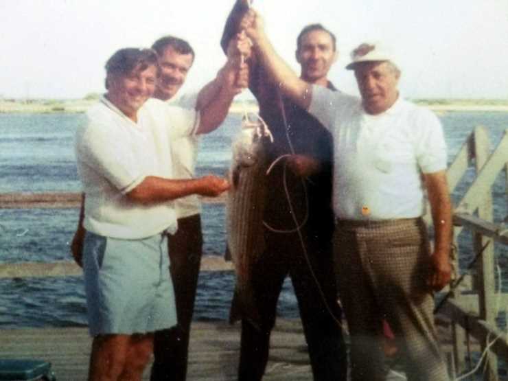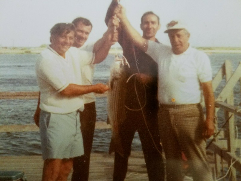 Uncle Eric, my dad, my uncle Chris, and my Pop. Taken on the dock in my back yard in Longport, circa 1972. - Nancy Slagle - August 2018 |