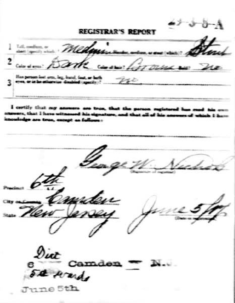 War I Draft Card Click on Images to Enlarge |