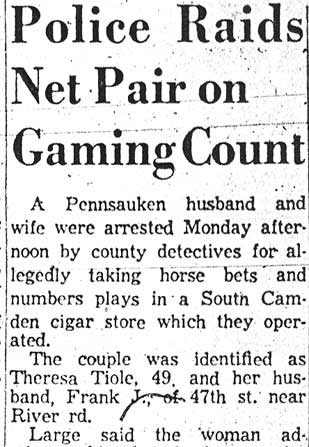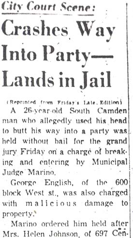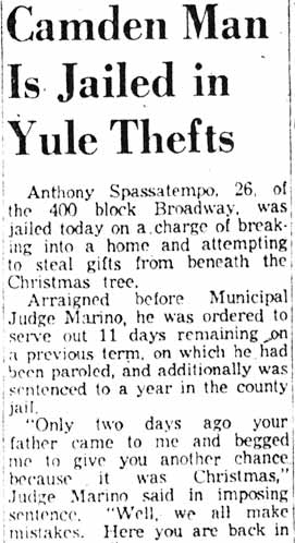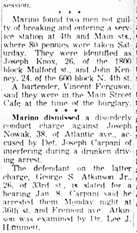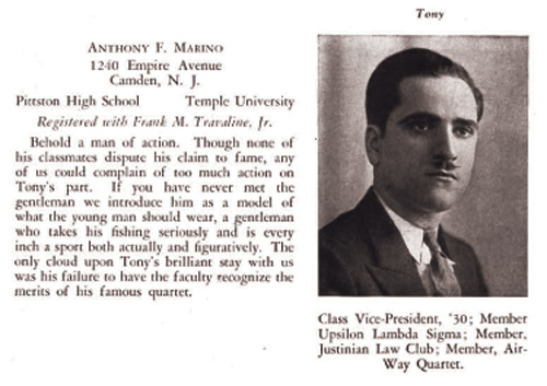 ANTHONY F. MARINO was born on October 29, 1902. He graduated from South Jersey Law School in 1931. He practiced law in Camden, and served as judge on Camden's Municipal Court in the mid-1950s. Anthony F. Marino died in December of 1979. |