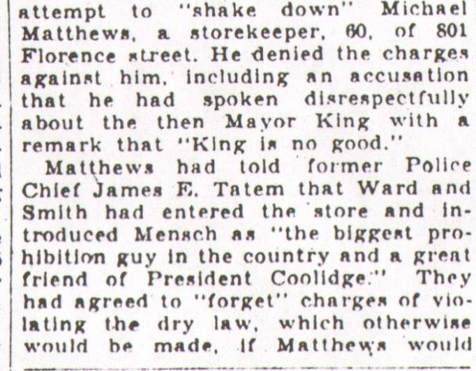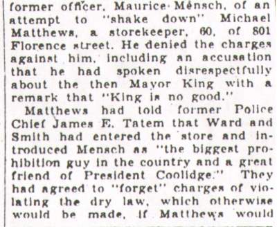 Wirtz is 37 and lives at 1197 Thurman Street. He was one of the first of the new policemen to be appointed to the department in 1924 after Civil Service was put into effect following the adoption of Commission government in 1924. He is a veteran of the World War and got a special rating for that reason when he took the Civil Service examination. In 1931 Wirtz was appointed as an accident investigator in the detective bureau and has served in that capacity ever since. He has a good reputation as a policeman and has never been in trouble before. About four years ago Wirtz figured in an automobile accident that caused serious injury to one of his legs. Rogalski was not arrested until County Detectives James Wren and Casimir Wojtkowiak took him in Monday night. The same detectives arrested Powell. Both suspects were charged with attempted holdup and robbery and committed to the county jail. Lewandowski also is in county jail, committed without bail by police Judge Lewis Liberman Saturday. |
