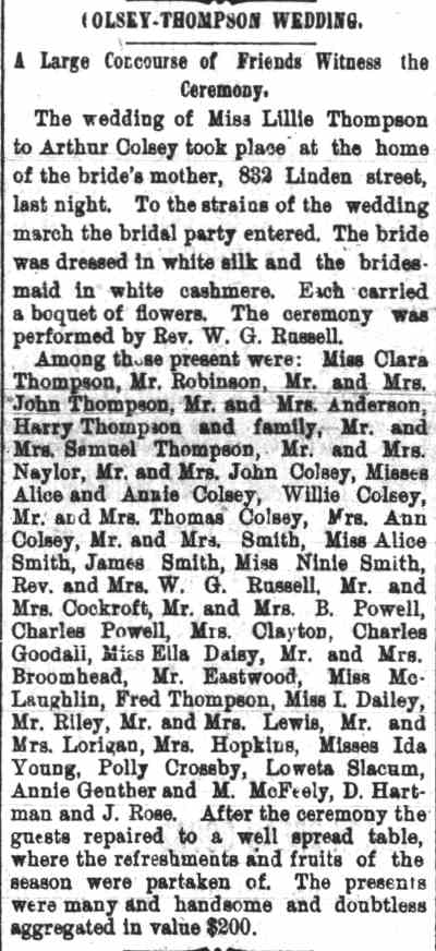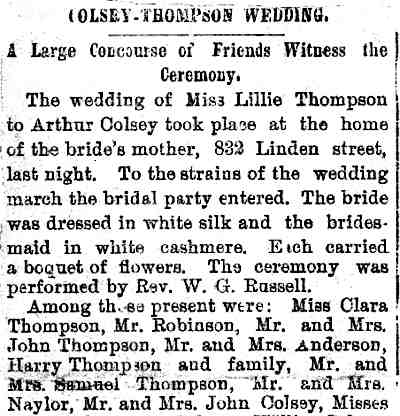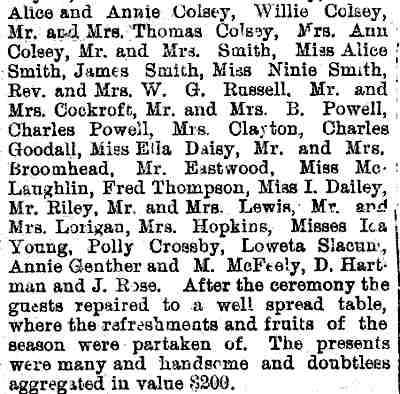 …continued… Elisha Gravenor - Grace Presbyterian Church - Bertha Skillen Bessie Skillen - Albert Ludlow - Joseph Wittick |