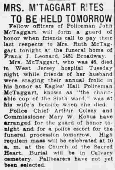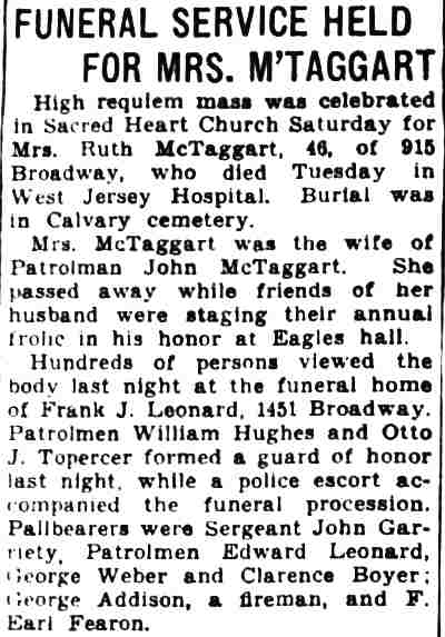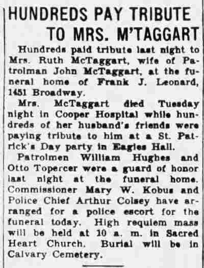 Camden Courier-Post Arthur Colsey Mary Kobus Church of the Sacred Heart Eagles Hall